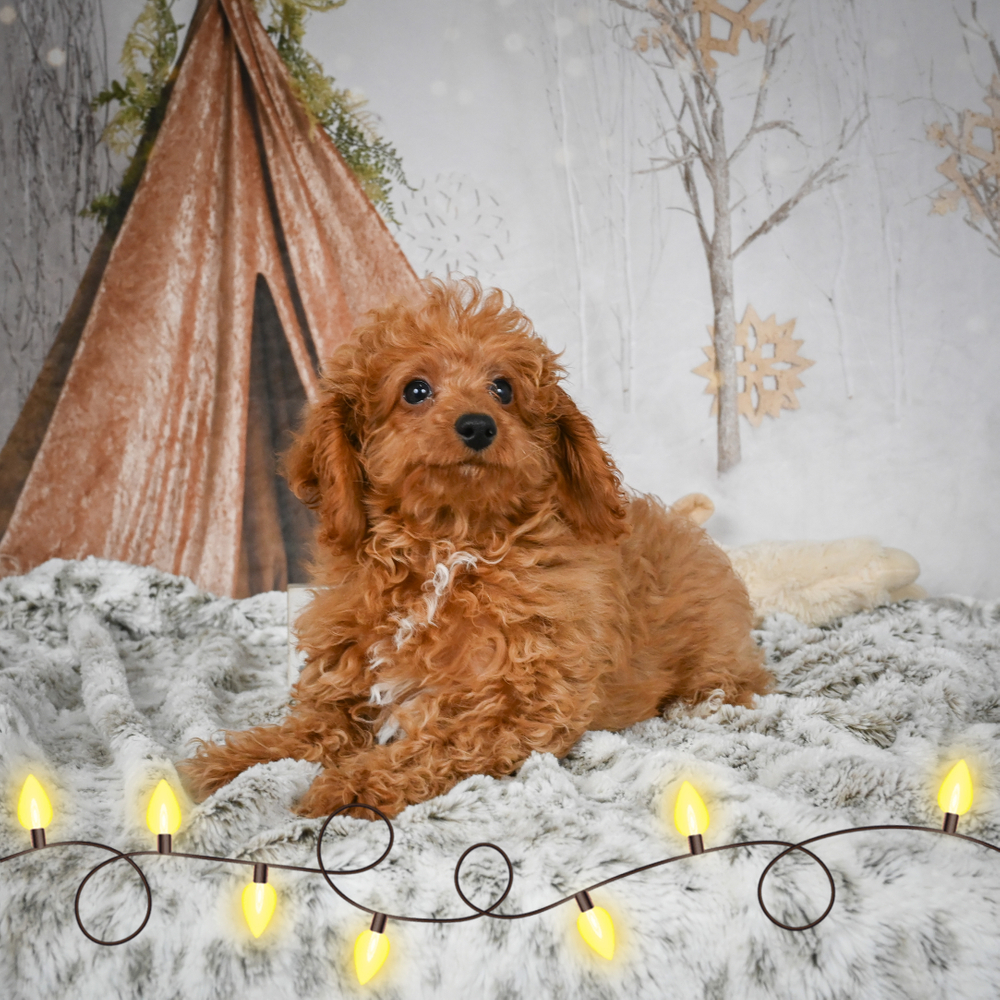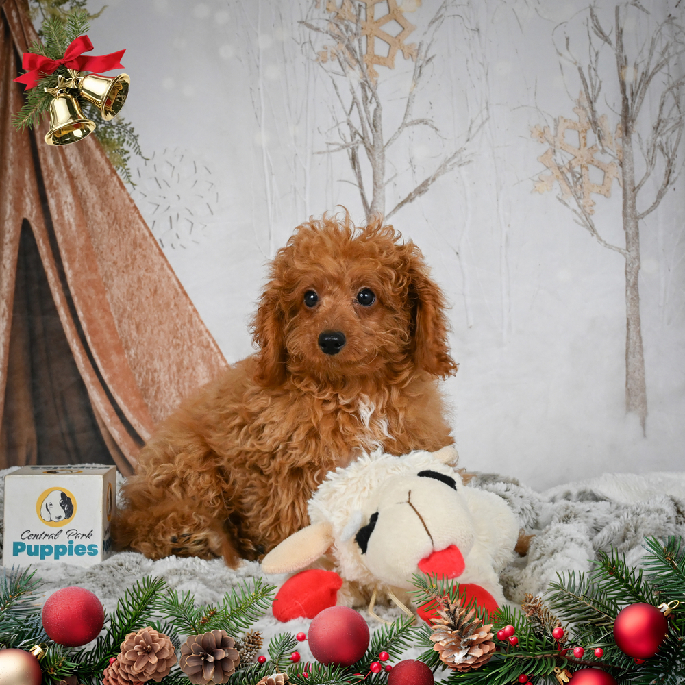 Discover the charming F1 Cavapoo, Clove, a delightful red beauty ready to love you. Clove is a cuddly companion, eager for playful adventures and couch snuggles. Her loving nature brightens any Indiana home. As a Leo, Clove is naturally charming and affectionate, showering you with warmth and love. Central Park Puppies will safely deliver Clove directly to your home, anywhere in the US. Ready to bring Clove into your loving home? This sweet pup is eager to make your day.
