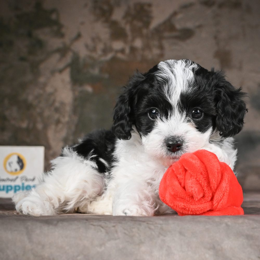 Charming Cavapoo Halo brings joy and companionship to any home. Friendly and playful, Halo loves snuggles and adventures equally. She promises joy and warmth to any household. As a Capricorn, Halo is naturally disciplined and brings a calming presence. Central Park Puppies will safely deliver the puppy directly to your home, anywhere in the US. Ready to bring Halo into your loving home? Embrace her joyful spirit and give her endless affection today.