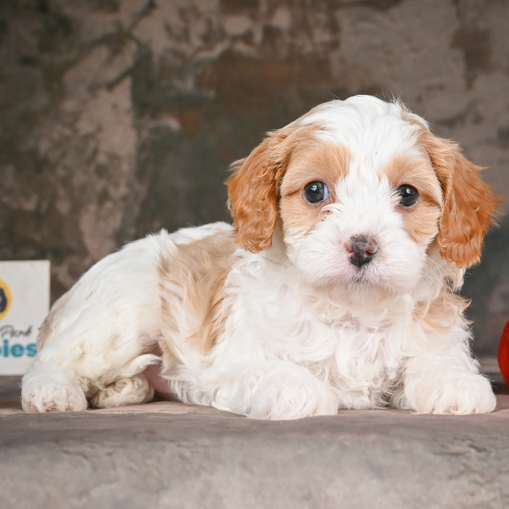 Charming and delightful F1 Cavapoo. Elsie's affectionate nature and tan and white markings make her an irresistible companion full of love. As a Capricorn, Elsie demonstrates loyalty and a strong sense of determination. Central Park Puppies will safely deliver Elsie directly to your home, anywhere in the US. Ready to bring Elsie into your loving home? Seize the opportunity for unmatched companionship today!