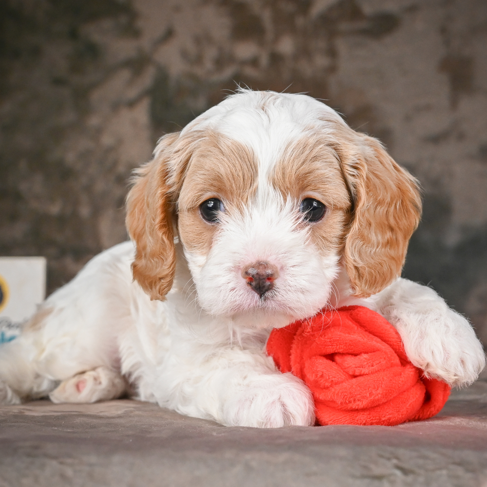 This adorable F1 Cavapoo hails. With her bright eyes and spirited personality, Honeybee is destined to bring joy and warmth to any home. As a Capricorn, Honeybee is naturally determined and loving, constantly bringing warmth and stability to her surroundings. Central Park Puppies will safely deliver Honeybee directly to your home, anywhere in the US. Ready to bring Honeybee into your loving home? This sweet puppy is excited to be your new friend.