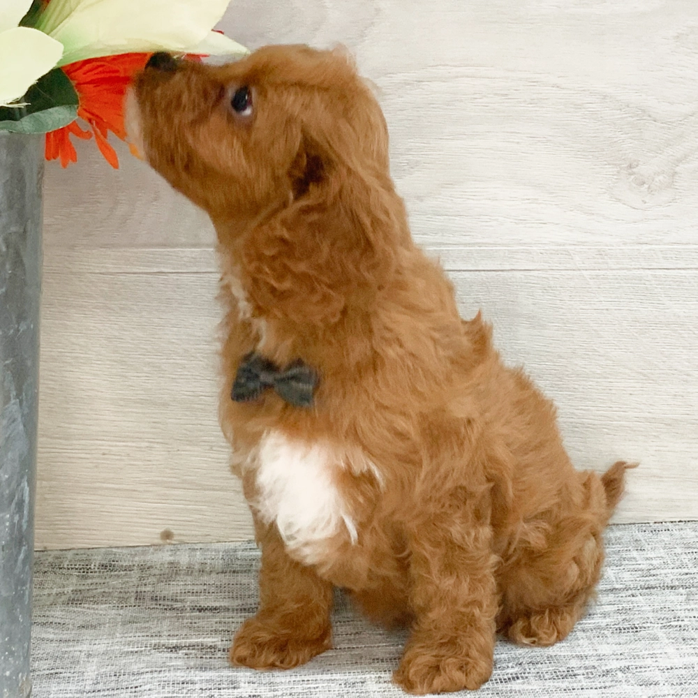 Adorable Cavapoo, full of charm and spunk, ready to join your family. Blaze's playful spirit and loving personality make him a delightful companion, eager to join your family. Being a Capricorn, Blaze is naturally loyal and dependable. Central Park Puppies will safely deliver the puppy directly to your home, anywhere in the US. Ready to bring Blaze into your loving home? He's waiting to fill your life with joy and laughter.