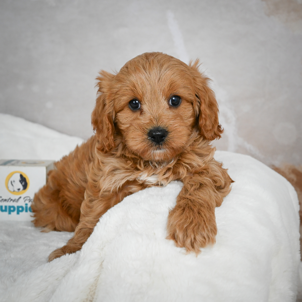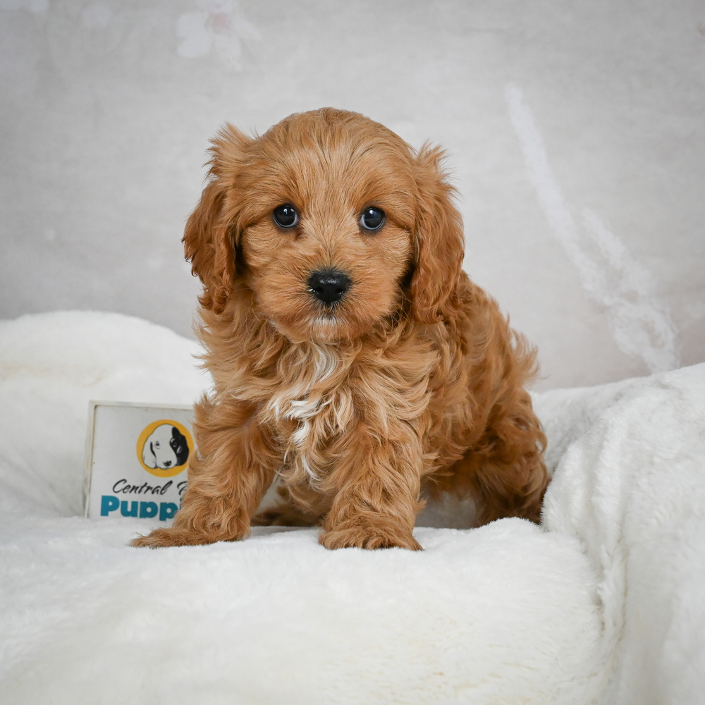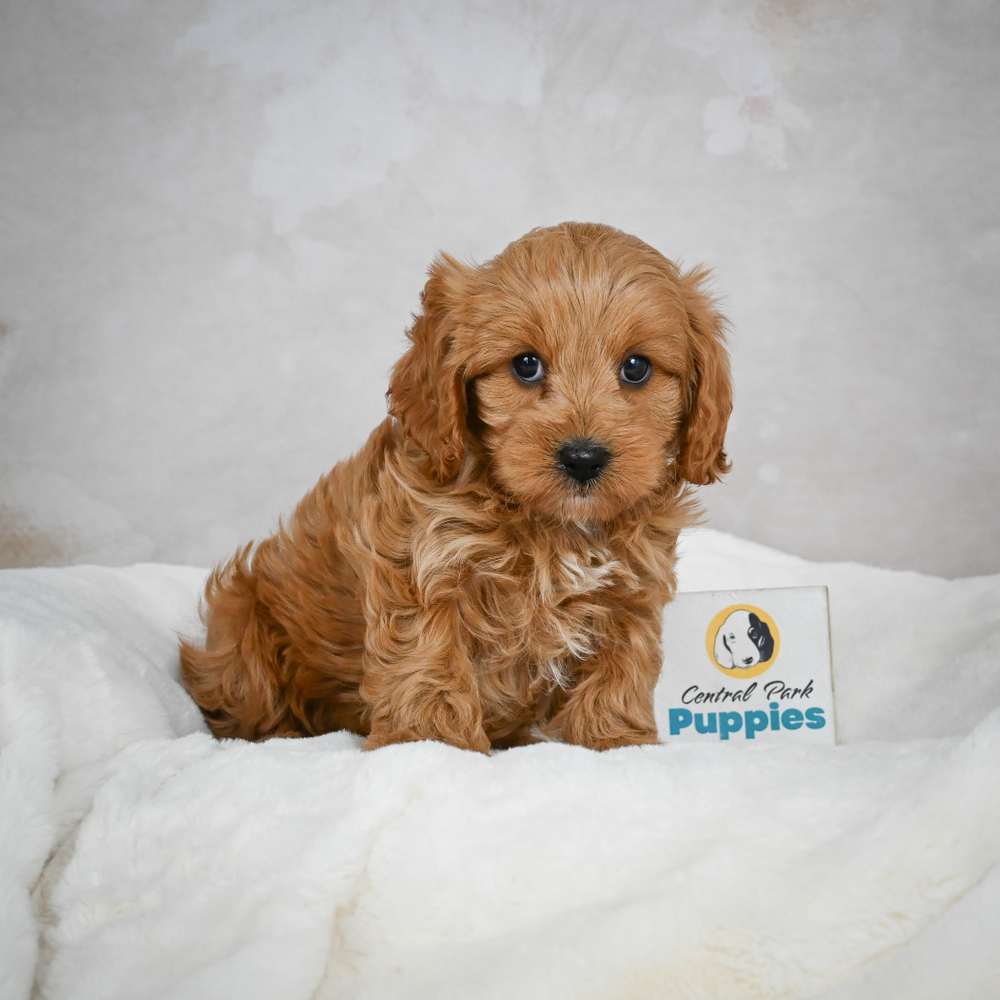 This red F1 Cavapoo promises fun and warmth. Finn, with his wagging tail and bouncing spirit, is always down for fun and love. As a Libra, Finn is charming and loves harmony, creating a peaceful atmosphere at home. Central Park Puppies will safely deliver Finn directly to your home, anywhere in the US. Ready to bring Finn into your loving home? He's waiting for your warm embrace and cuddles.