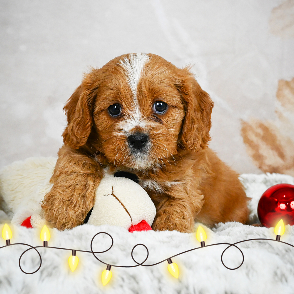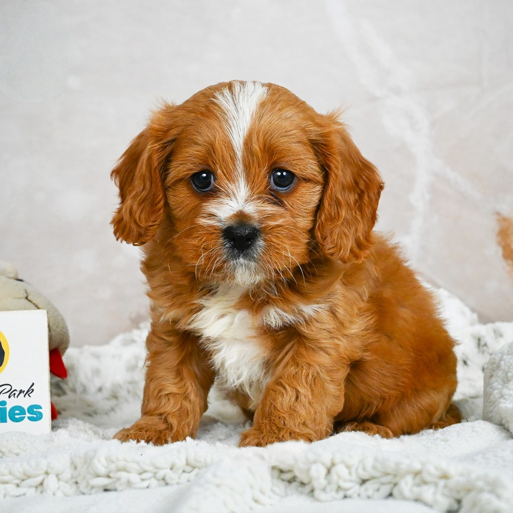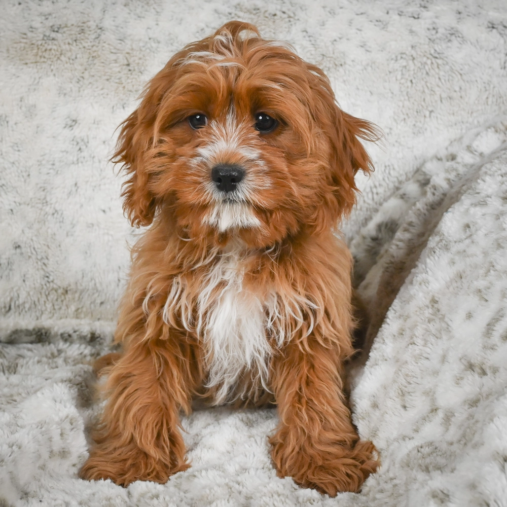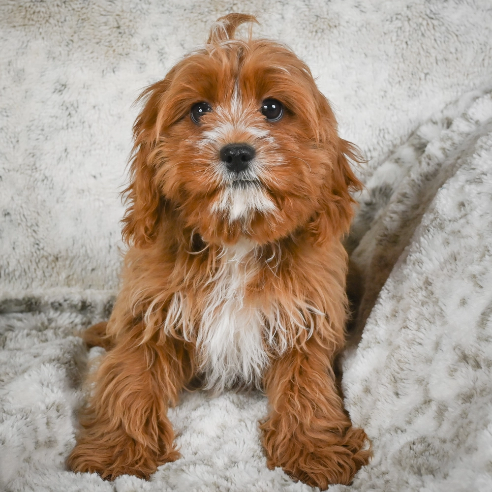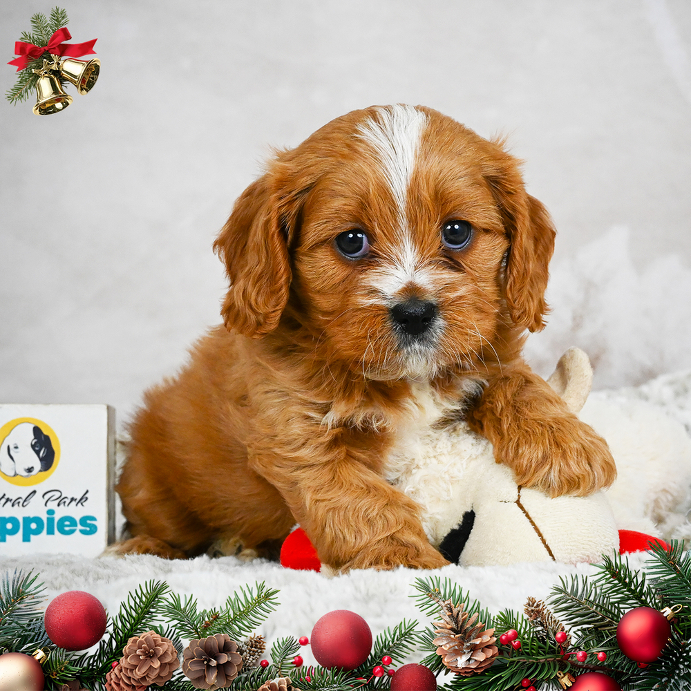 Adorable F1 Cavapoo puppy named Topaz. Topaz brings energy and love into any home. Always ready to play, his friendly nature is irresistible. As a Scorpio, Topaz is naturally intuitive and fiercely loyal, promising a strong bond with his new family. Central Park Puppies will safely deliver Topaz directly to your home, anywhere in the US. Ready to make Topaz a cherished member of your family? Embrace his joyful presence and playful nature today!