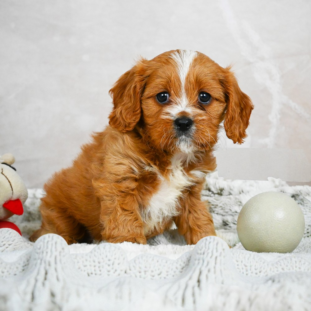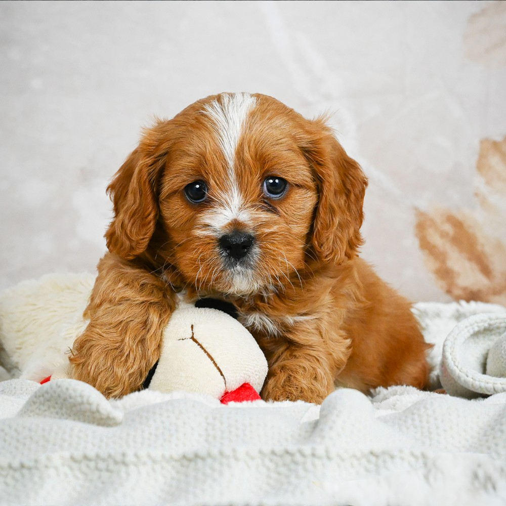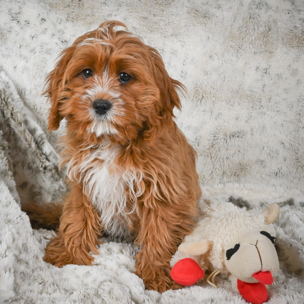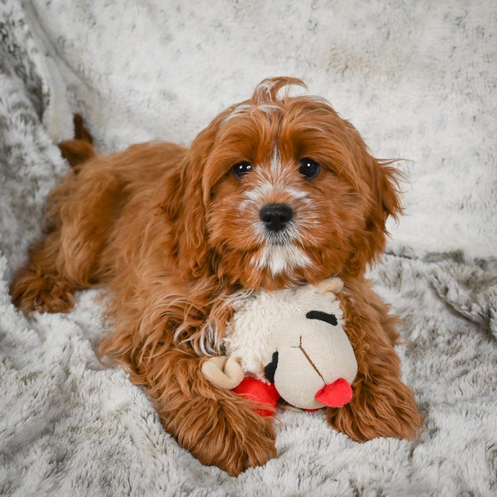Adorable F1 Cavapoo puppy named Topaz. Topaz brings energy and love into any home. Always ready to play, his friendly nature is irresistible. As a Scorpio, Topaz is naturally intuitive and fiercely loyal, promising a strong bond with his new family. Central Park Puppies will safely deliver Topaz directly to your home, anywhere in the US. Ready to make Topaz a cherished member of your family? Embrace his joyful presence and playful nature today!