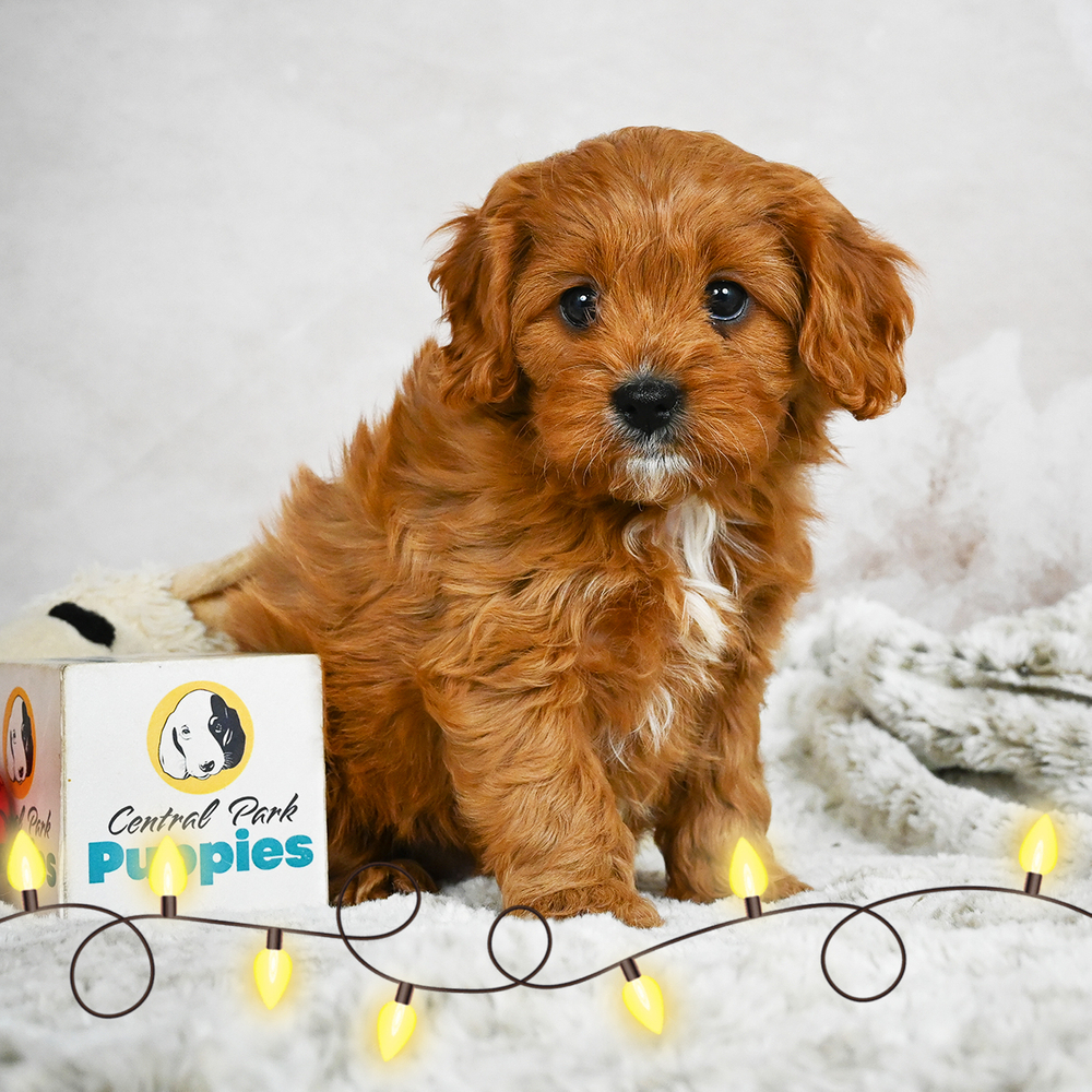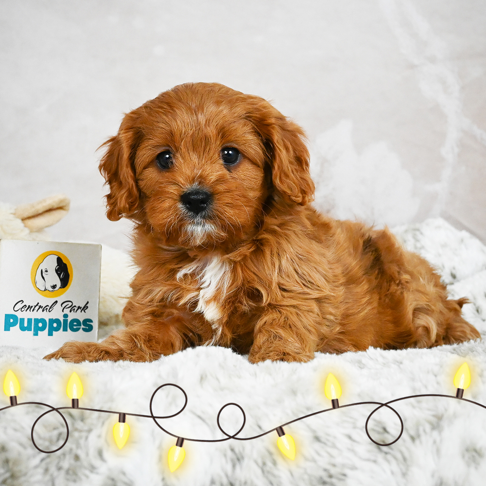 Discover the delightful mix of the F1 Cavapoo. Meet Titian, a charming red puppy who brings joy with his playful antics and loving demeanor, perfect for any home. As a Scorpio, Titian is naturally curious and deeply loving, ensuring a loyal friendship. Central Park Puppies will safely deliver the puppy directly to your home, anywhere in the US. Ready to bring Titian into your loving home? Make him yours today and start an incredible journey together.