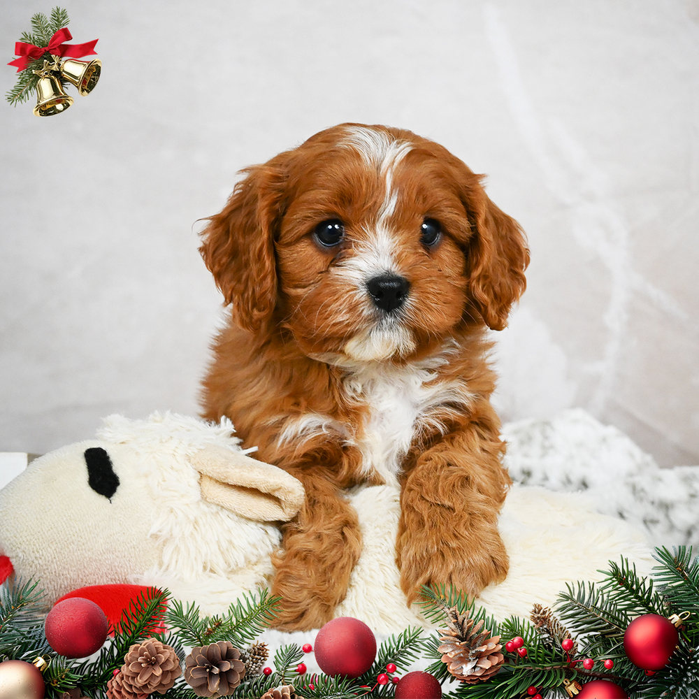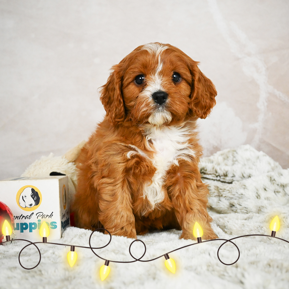 Charming F1 Cavapoo with a delightful presence. Redd is a friendly puppy with a keen and playful spirit, ready to bring joy to your family. As a Scorpio, Redd's loyalty and affection are unmatched, making him a dedicated companion. Central Park Puppies ensures Redd will arrive safely at your home, anywhere in the US. Ready to bring Redd into your loving home? Act quickly and make this delightful puppy yours today.