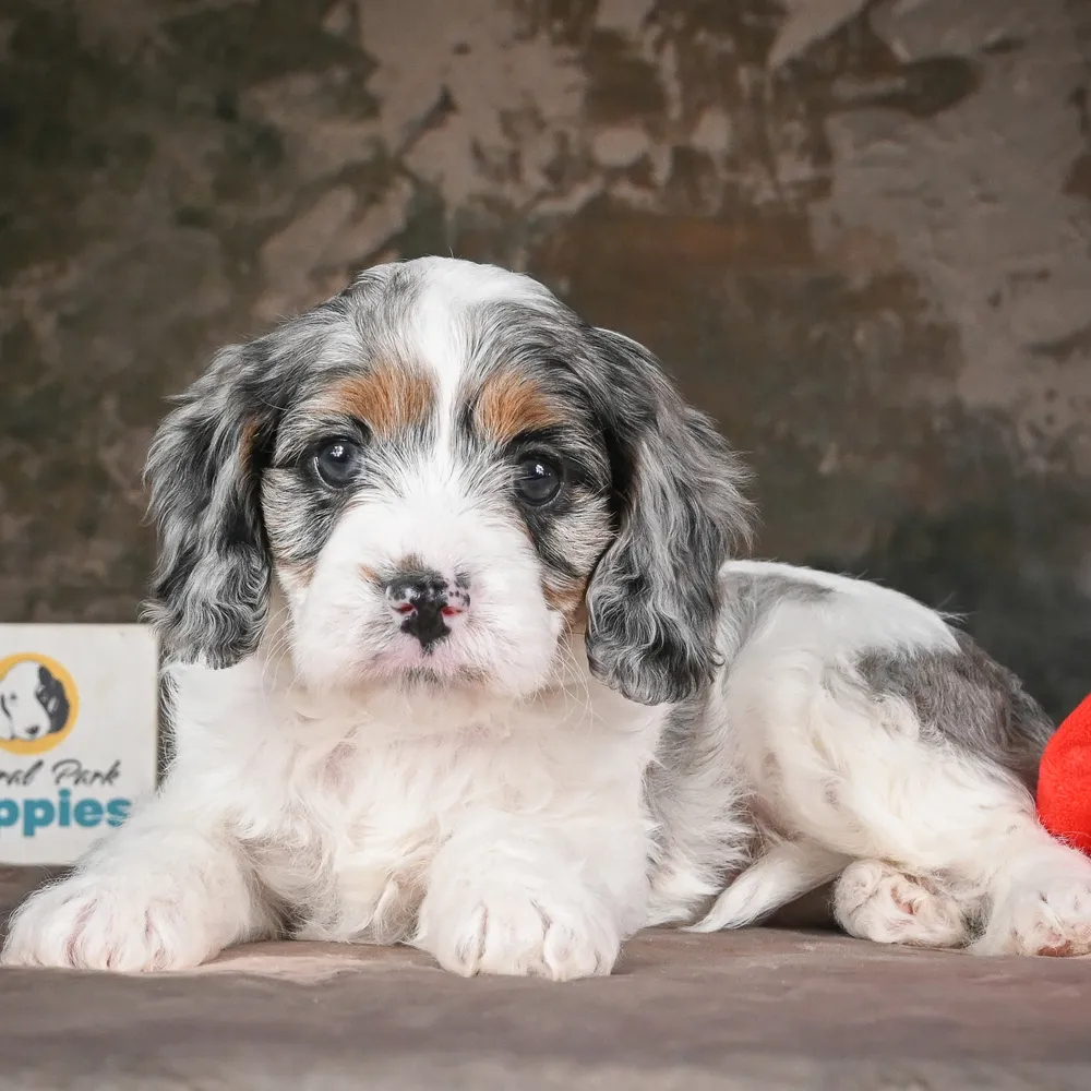 Energetic and charming F1 Cavapoo, Galaxy offers a lovable personality you can't resist. Full of life, Galaxy offers love and play in equal measure. His curiosity and cuddles light up any home. Capricorn puppies like Galaxy are known for their loyalty and determination, bringing stability to any household. Central Park Puppies will safely deliver the puppy directly to your home, anywhere in the US. Ready to bring Galaxy into your loving home? He's eager to start his new adventure with you. Act now!
