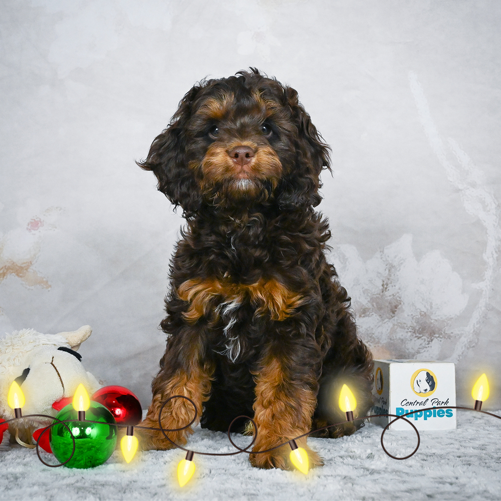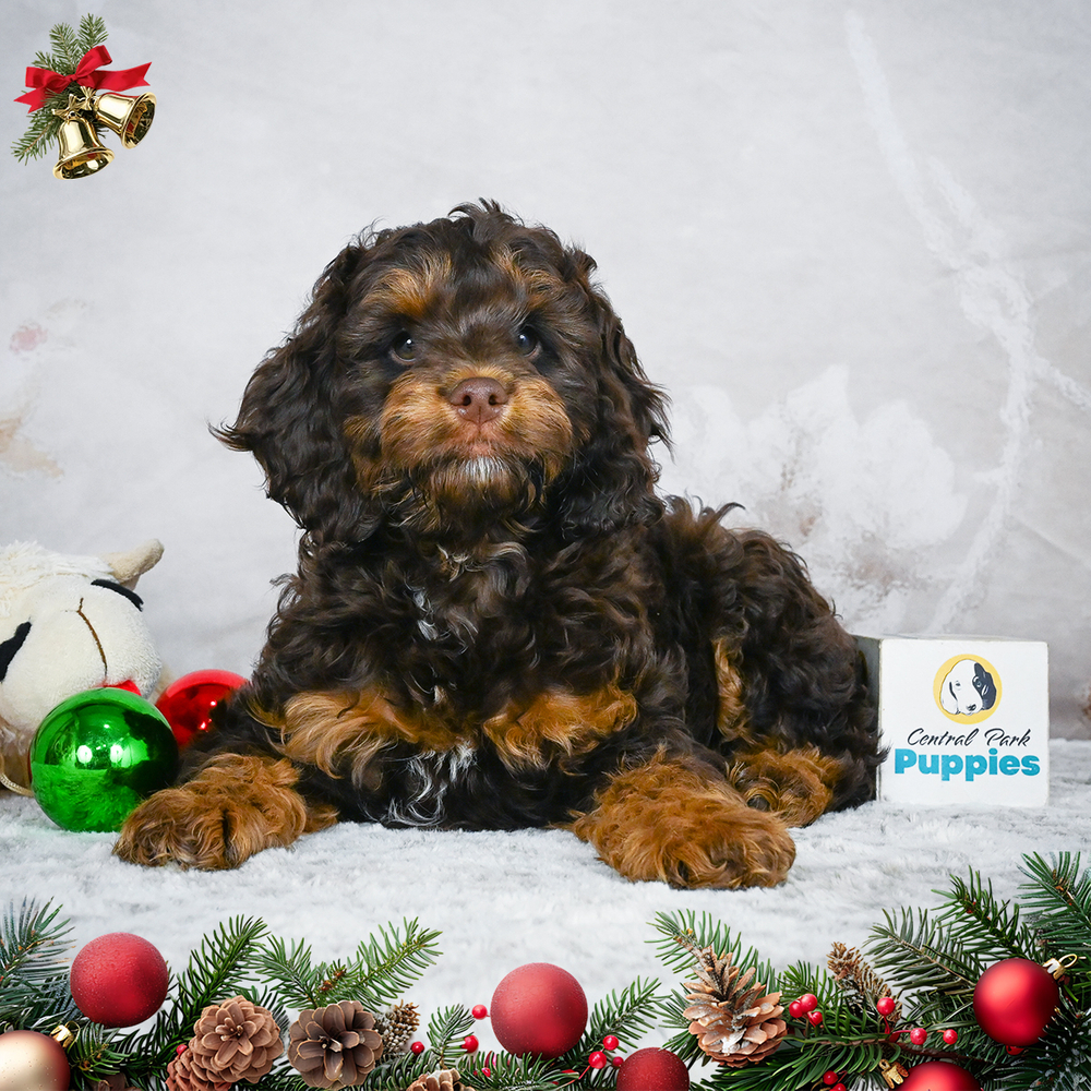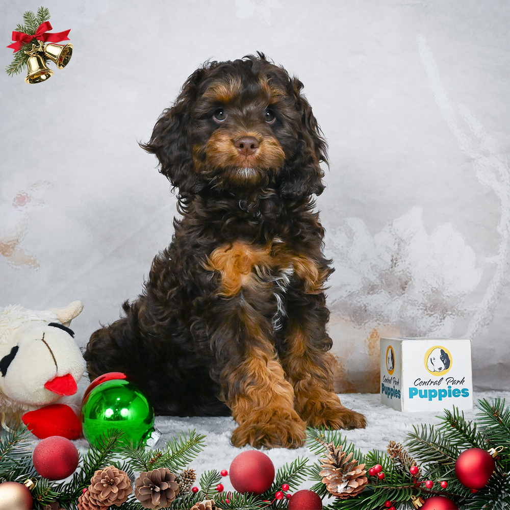 This charming F1 Cockapoo puppy, Chewy, With his chocolate and tan coat, Chewy is full of energy and is the perfect joy-bringer. As a Libra, Chewy is naturally harmonious, bringing balance and joy into any home. Central Park Puppies will safely deliver the puppy directly to your home, anywhere in the US. Ready to bring Chewy into your loving home? Make this charming puppy part of your family today.