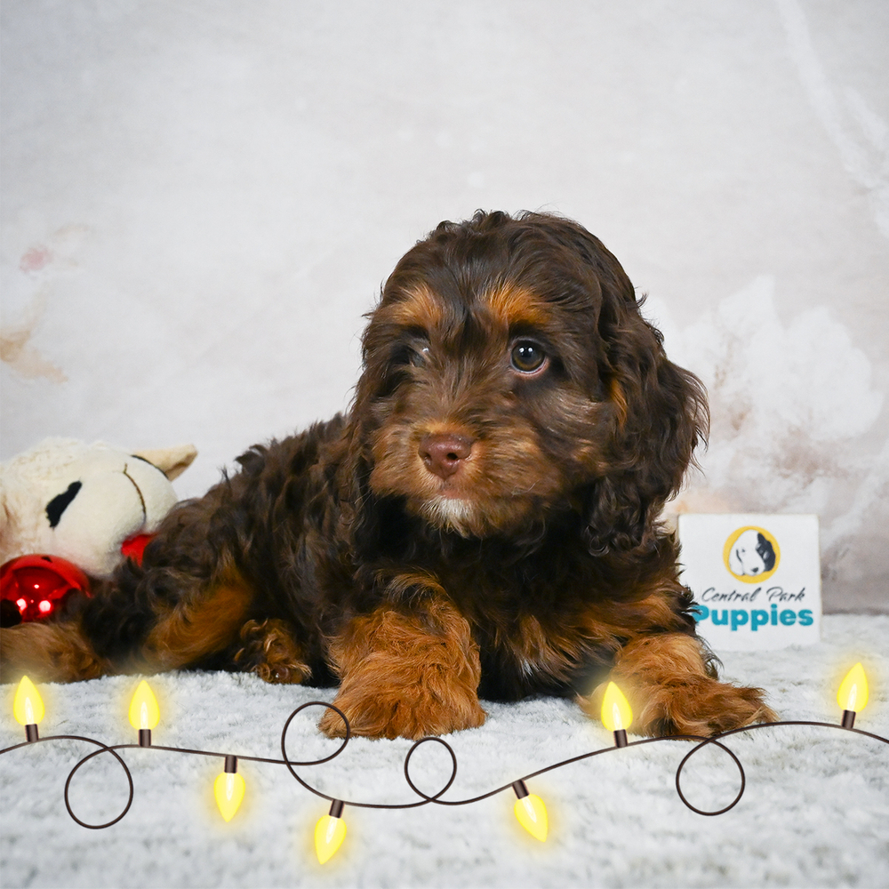 Charming F1 Cockapoo Chip awaits is ready to adore her new family. With Chip, expect lively playtime and endless affection, perfect for bringing warmth and joy to any home. As a Libra, Chip will bring harmony and balance to her new home. Central Park Puppies will safely deliver the puppy directly to your home, anywhere in the US. Ready to bring Chip into your loving home? Her playful charm and affection are waiting just for you.