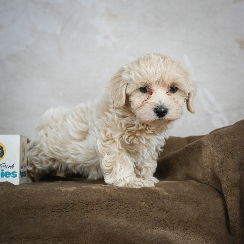 This charming F1 Maltipoo is a delightful package of joy and warmth. Kodi is a cheerful little guy with a light tan coat, full of curiosity and eager to cuddle. As a Virgo, Kodi is likely to be both thoughtful and affectionate, offering endless companionship. Central Park Puppies will deliver Kodi safely to your door anywhere in the US. Ready to bring Kodi into your loving home and experience his joyful presence every day?