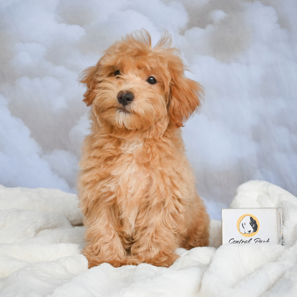 This F1 Maltipoo puppy is an irresistible light red furball. Jammy is playful and loves cuddling, making him a perfect family companion. As a Gemini, Jammy is curious and loves to explore everything around him. Central Park Puppies will safely deliver the puppy directly to your home, anywhere in the US. Ready to bring Jammy into your loving home? Don’t miss out on this adorable little companion!