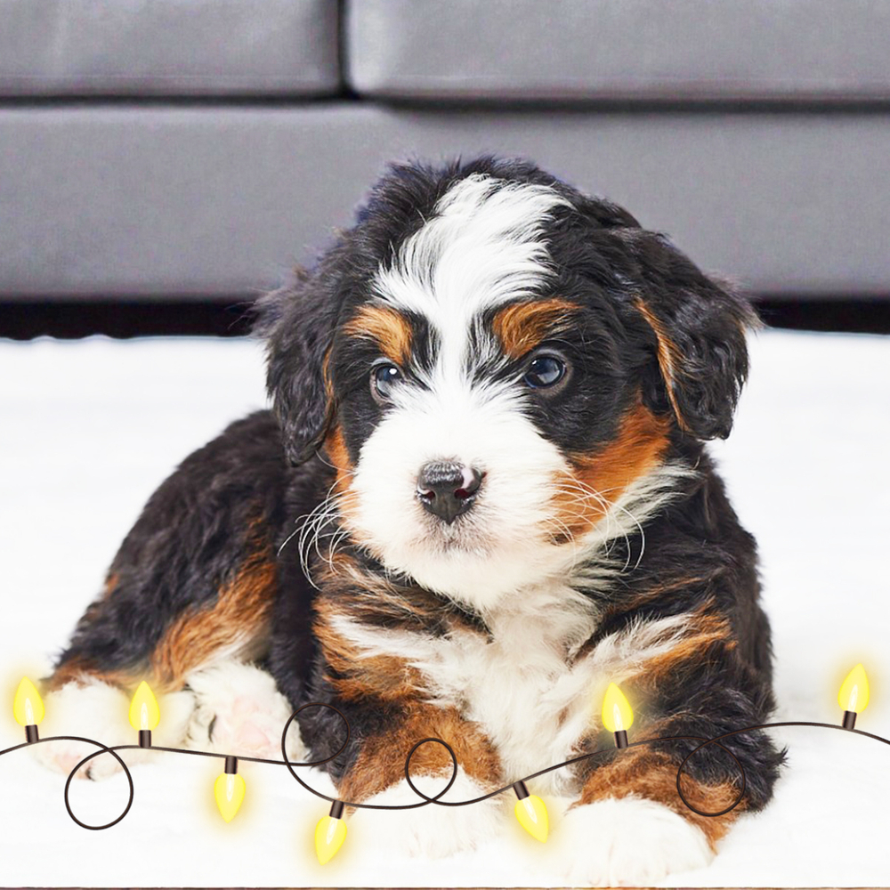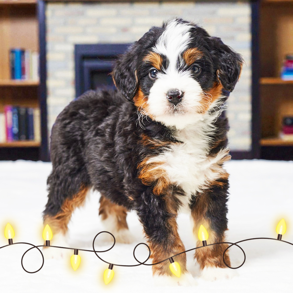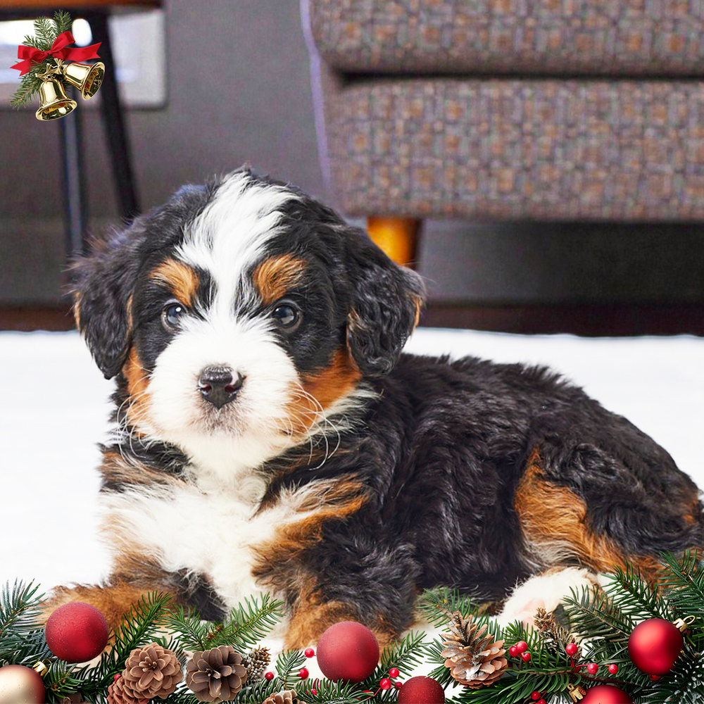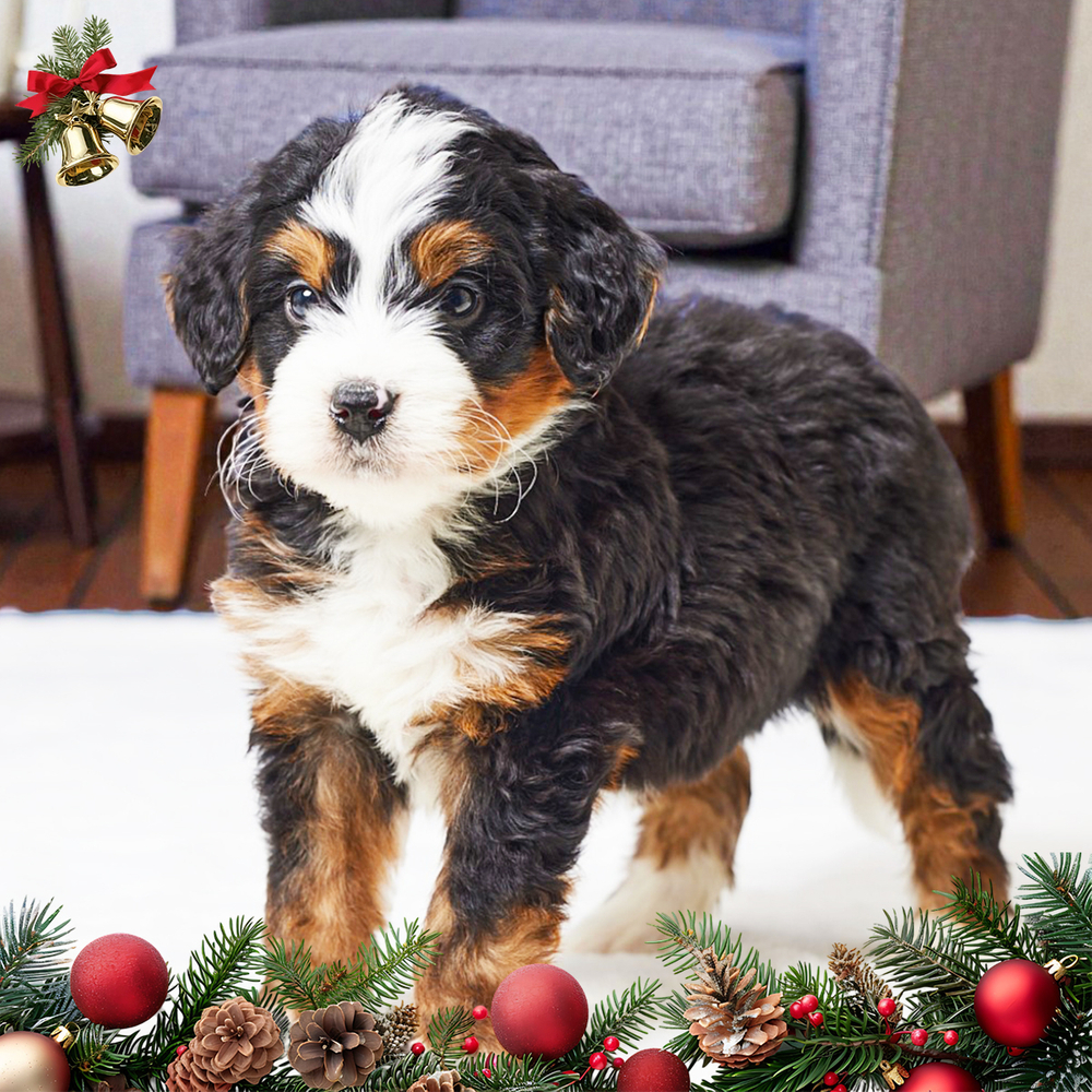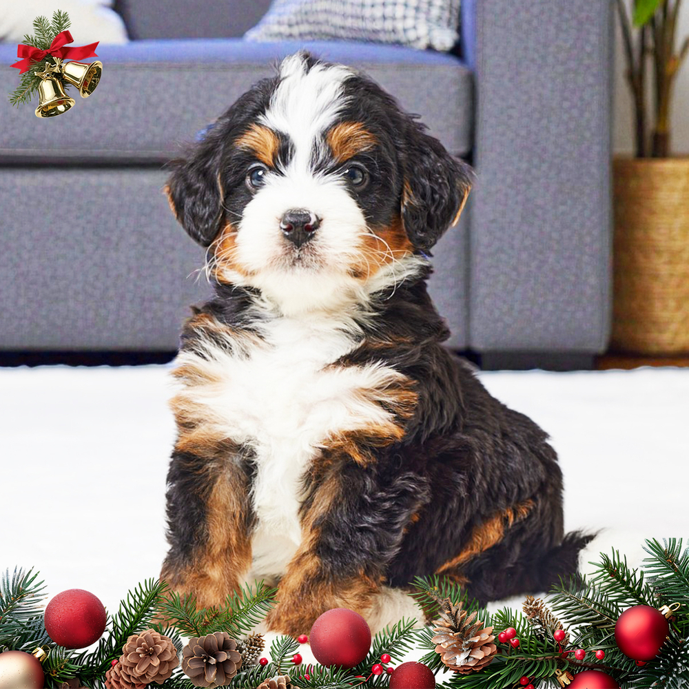 Adorable F1 Mini Bernedoodle with a striking tri-color coat. Energetic and affectionate, Lonny is quick to bond, bringing joy and laughter to all surroundings. Lonny’s Libra qualities bring balance and harmony, making him easygoing and lovable. Central Park Puppies will safely deliver the puppy directly to your home, anywhere in the US. Ready to bring Lonny into your loving home? Act fast to welcome this delightful companion today!