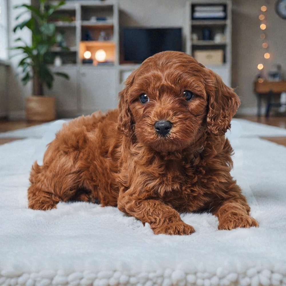 This F1B Cavapoo pup is simply irresistible with her red coat. Bloom thrives on companionship, balancing playful energy with a sweet, gentle nature that is hard to resist. As a Scorpio, Bloom is naturally curious and loving, bringing joy and loyalty to any household. Central Park Puppies will safely deliver Bloom directly to your home, anywhere in the US. Ready to bring Bloom into your loving home? With her sweet nature, she'll fit right in effortlessly.