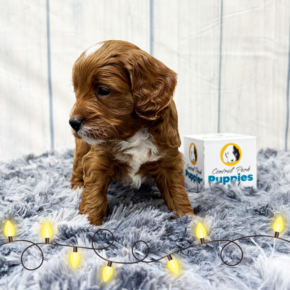 Adorable F1B Cavapoo puppy seeks new adventures with you. Luca thrives on affection and fun. With his lively spirit and gentle snuggles, he's the perfect furry friend. As a Scorpio, Luca is deeply loyal and always ready to explore. Central Park Puppies will safely deliver the puppy directly to your home, anywhere in the US. Ready to bring Luca into your loving home? Don't wait; his heart is set on making you smile.