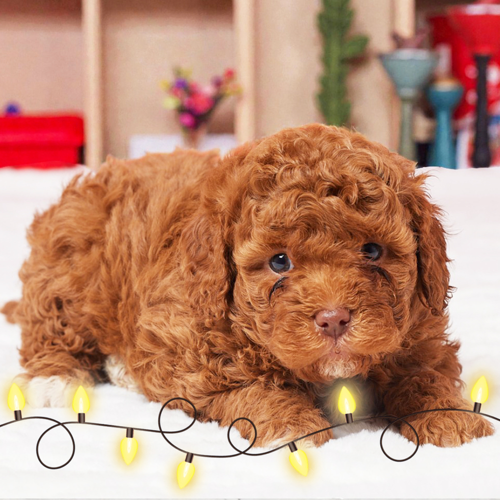 Charming F1B Cavapoo named Pepper, combines cuteness and companionship delightfully. Pepper's gentle nature and playful antics make him a joy to have around. With his sweet face, he's hard to resist. As a Libra, Pepper is naturally charming and loves to please, making him a balanced companion. Central Park Puppies will safely deliver the puppy directly to your home, anywhere in the US. Ready to bring Pepper into your loving home? He eagerly awaits to fill your life with joy and love.
