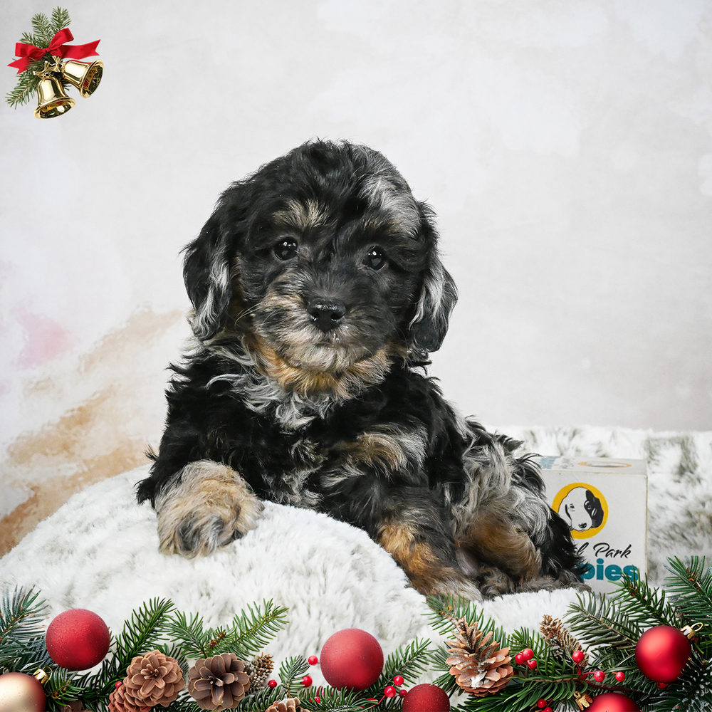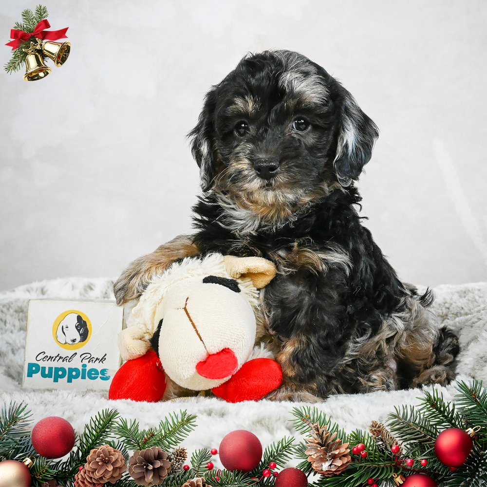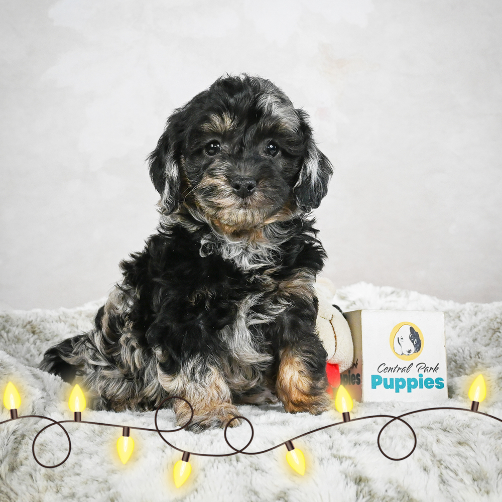An F1B Cockapoo with the unique Blue Merle color awaits your loving home. With Denim, playtime is always on the agenda. His friendly demeanor and gentle nature make him a household treasure. As a Scorpio, Denim is intensely loyal and thrives on deep bonds with his loved ones. Central Park Puppies will safely deliver the puppy directly to your home, anywhere in the US. Ready to bring Denim into your loving home? The perfect companion is waiting for you!