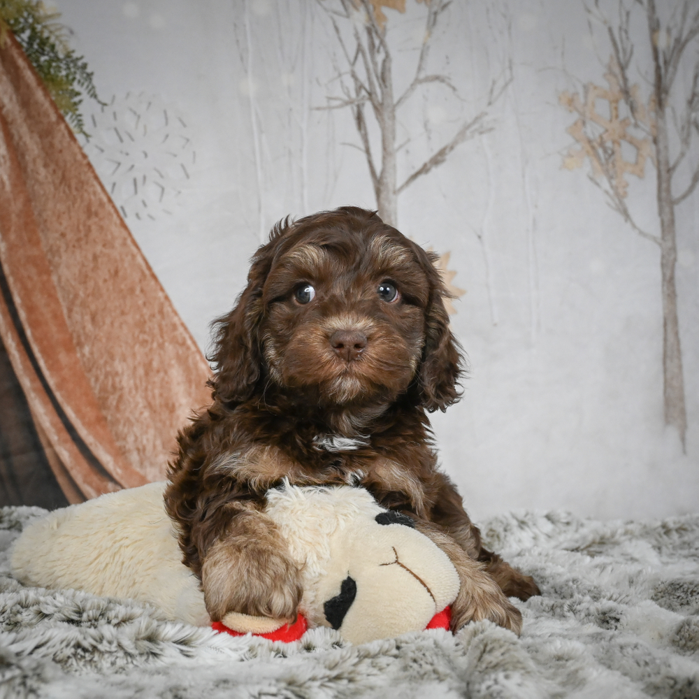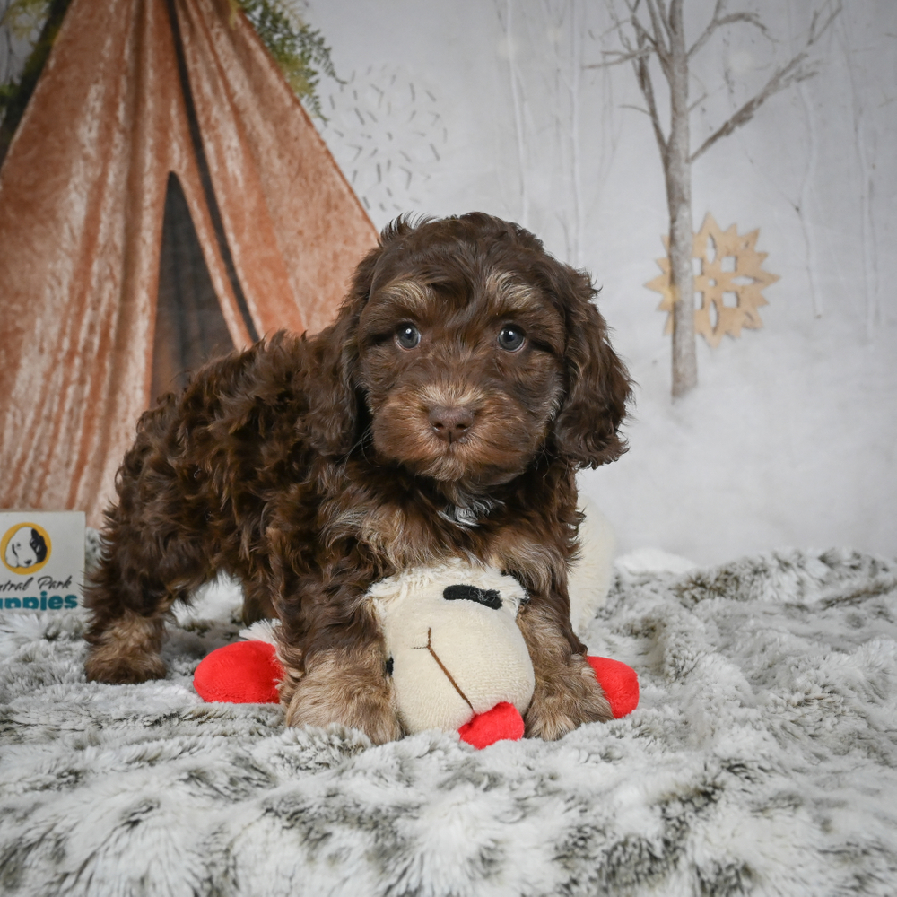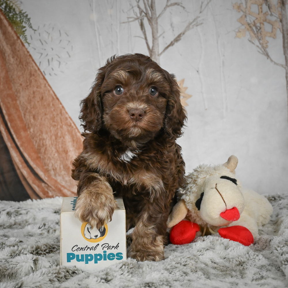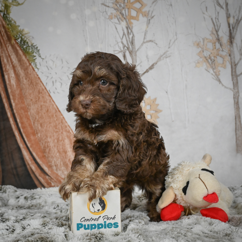 Chocolate charm from the heart of F1 Cockapoo magic. Maple's lively nature and spirited curiosity make him the perfect companion for family adventures and playful days. Being a Libra, Maple brings balance and joy wherever he goes. Central Park Puppies will safely deliver the puppy directly to your home, anywhere in the US. Ready to bring Maple into your loving home? This lovable pup is waiting to brighten your days!