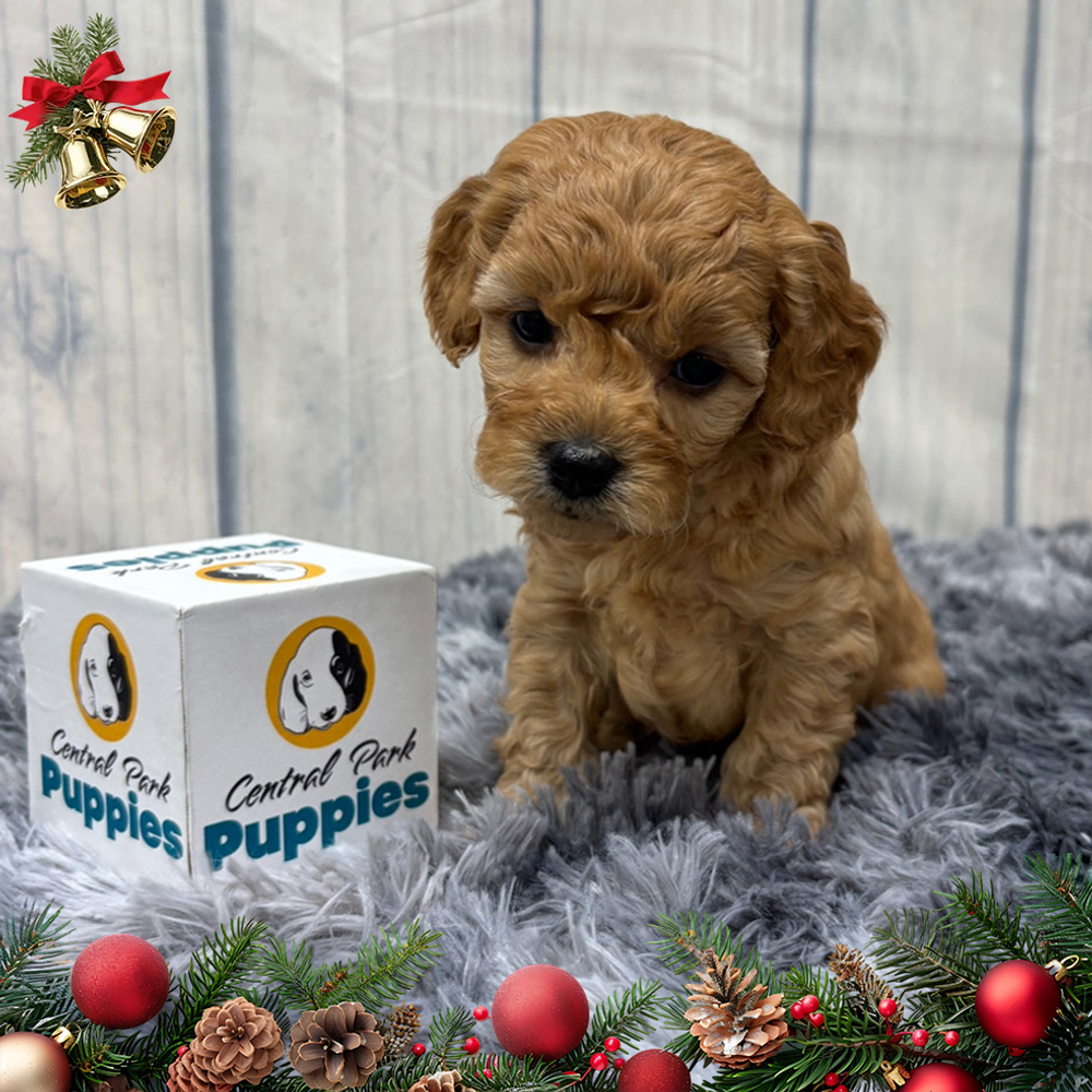 Discover Zara, a charming F1B Maltipoo with a beautiful red coat. With joy in her eyes, Zara's sweet nature and small size make her perfect for family adventures. As a Libra, Zara brings harmony and charm into any home effortlessly. Central Park Puppies will safely deliver Zara directly to your home, anywhere in the US. Ready to bring Zara into your loving home? Her playful energy and cuddles await you eagerly!