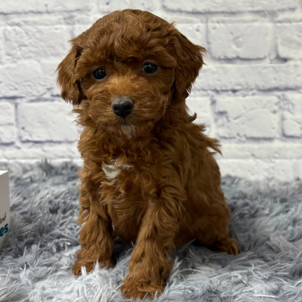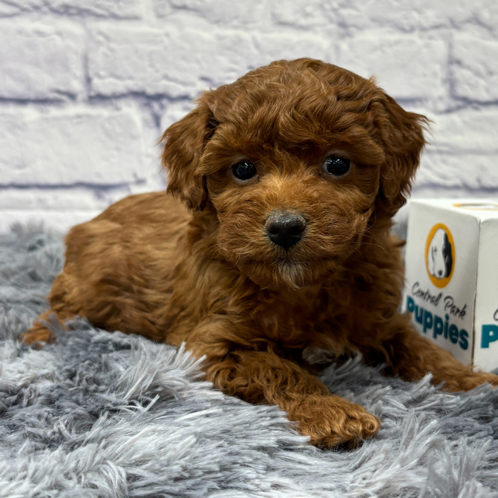 Experience the irresistible charm of a lovely red and white Maltipoo named Ember. Ember's lively nature, combined with her sweet disposition, ensures endless fun and companionship for her family. Being a Sagittarius, Ember is adventurous and full of energy. Central Park Puppies will safely deliver the puppy directly to your home, anywhere in the US. Ready to bring Ember into your loving home? She promises to fill your days with joy and warmth.