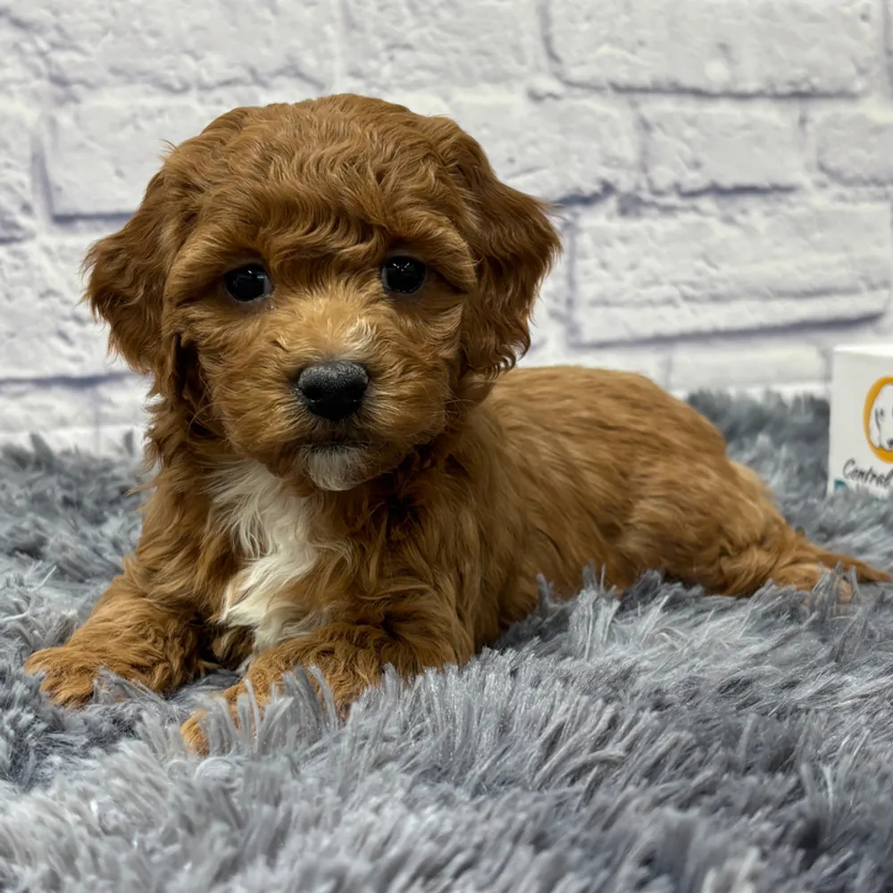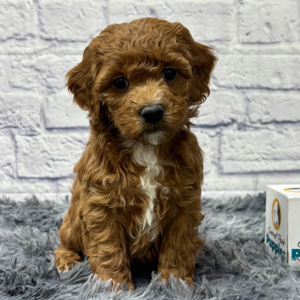A charming F1B Maltipoo named Carmella awaits new adventures with you. Carmella's playful nature and vibrant energy make her a delightful companion. Her distinct red coat with a white chest is enchanting. Being a Sagittarius, Carmella is adventurous and full of energy, perfect for lively interactions. Central Park Puppies will safely deliver Carmella directly to your home, anywhere in the US. Ready to welcome Carmella into your life and enjoy her spirited companionship every day? Act now to adopt.