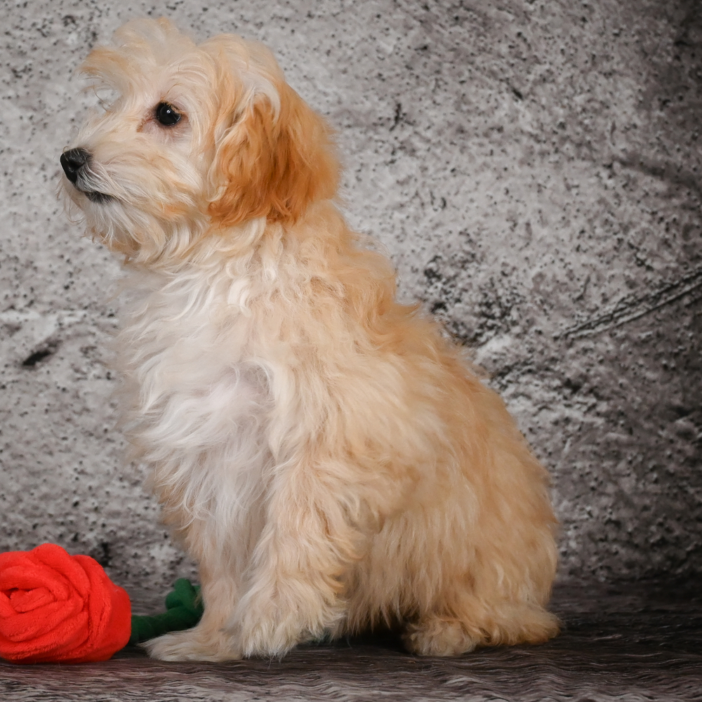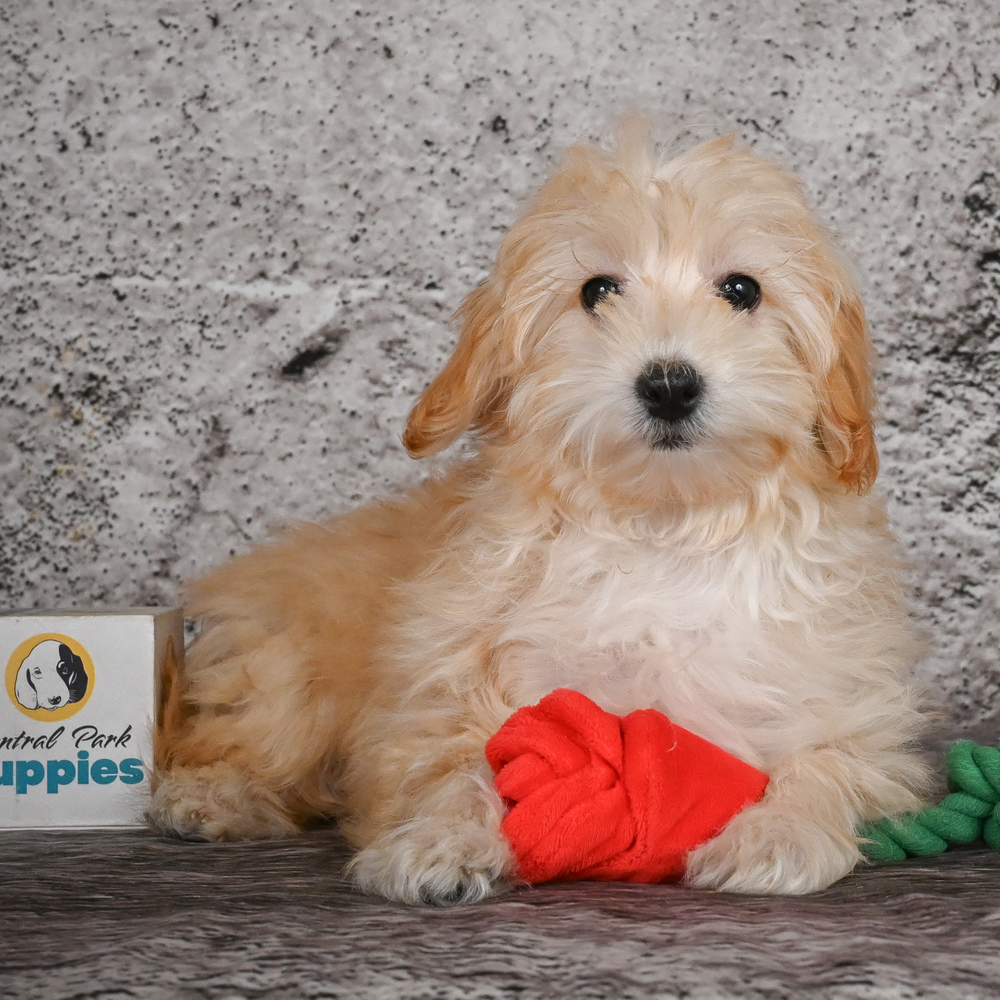 Discover HazelNut, a charming F1B Maltipoo. HazelNut's playful nature and adorable light red coat can instantly bring warmth and happiness into your home. As a Scorpio, HazelNut is bound to be loyal and full of personality. Central Park Puppies will safely deliver the puppy directly to your home, anywhere in the US. Ready to bring HazelNut into your loving home? This sweet cuddle-bug is sure to steal your heart!