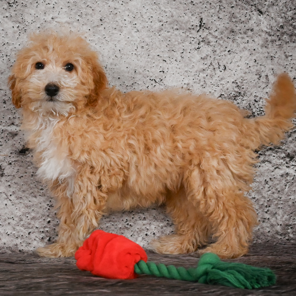 Discover Loki, a captivating F1B Maltipoo with a charming tan coat and unique forehead markings. This little guy, Loki, is known for his boundless energy and loving nature. You’re in for endless cuddles and fun! As a Scorpio, Loki is naturally passionate and deeply loyal, making him a devoted friend. Central Park Puppies will safely deliver Loki directly to your home, anywhere in the US. Ready to bring Loki into your loving home? He’s awaiting his forever family, and it could be you!