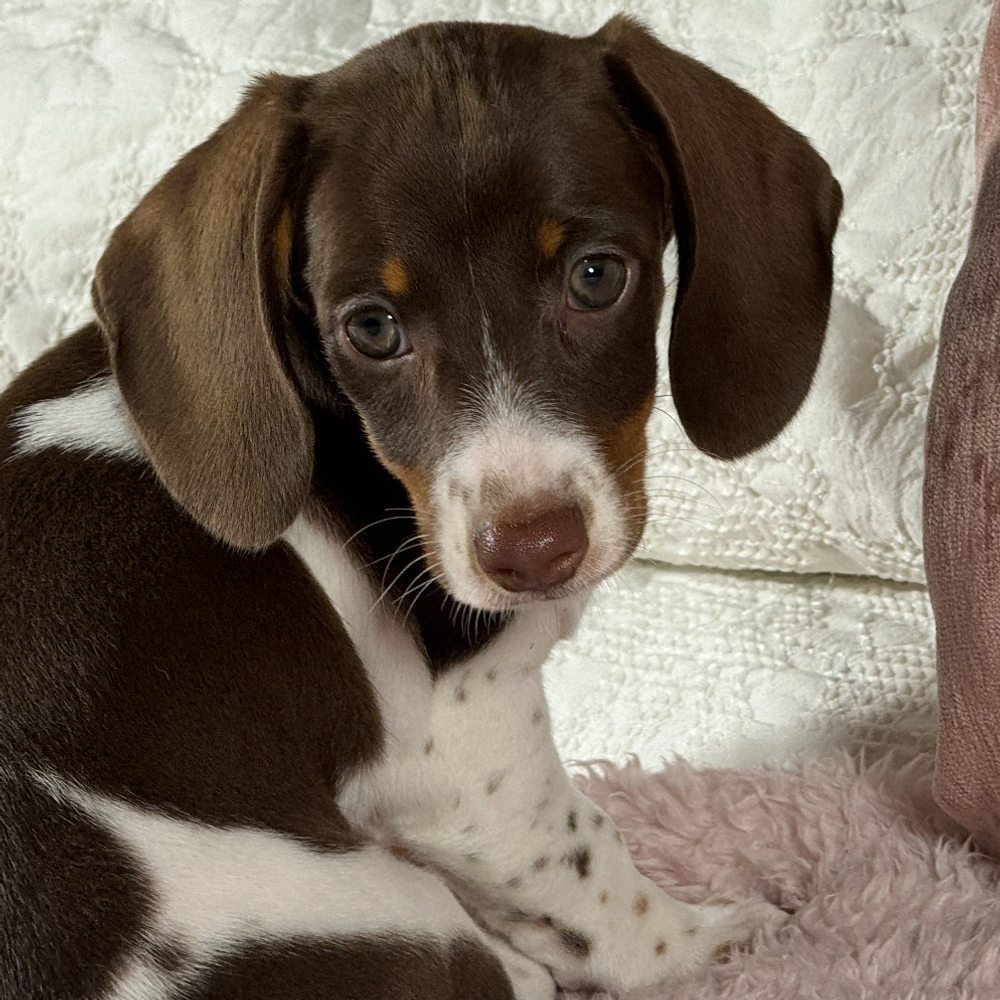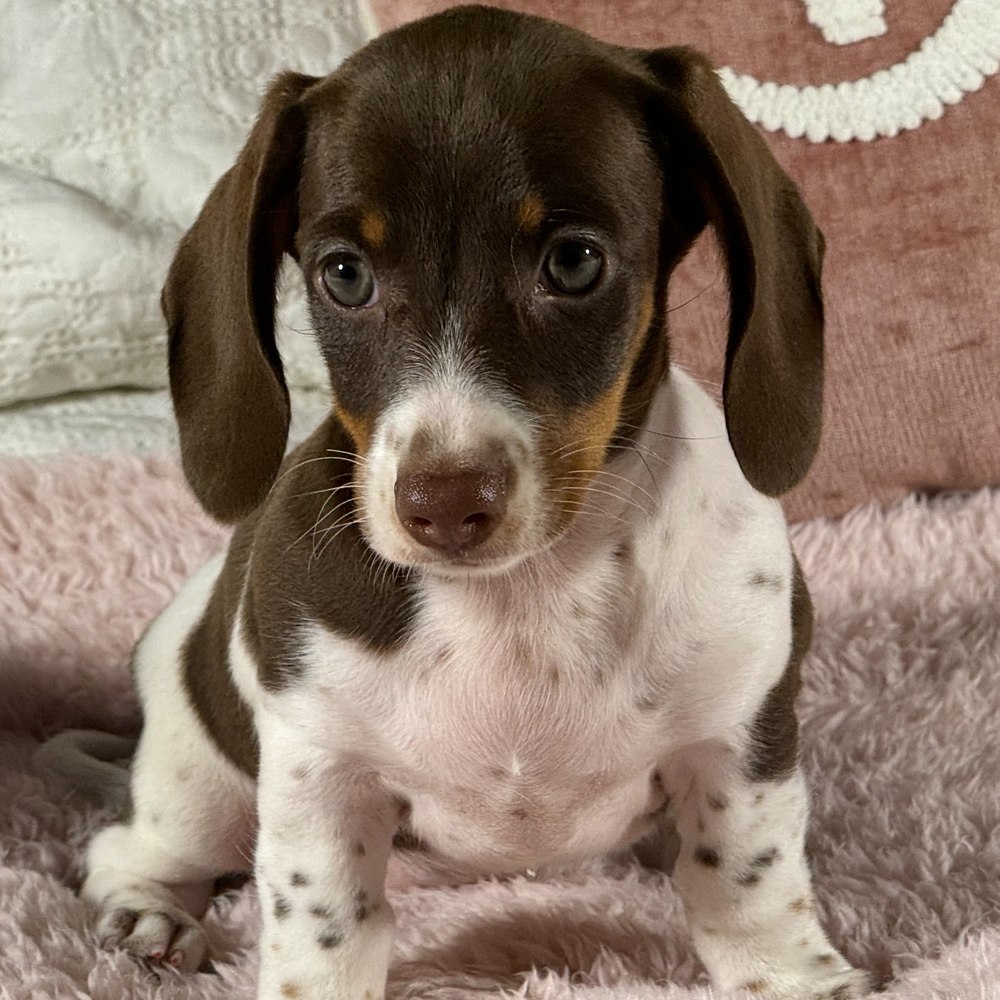 This Mini Dachshund has undeniable charm and a distinctive look. You’ll adore Tippy’s lively personality and her affectionate nature. Those white-tipped markings add a special touch. As a Leo, Tippy is naturally playful and full of energy, with a warm-hearted spirit. Central Park Puppies will safely deliver the puppy directly to your home, anywhere in the US. Ready to bring Tippy into your loving home? Don't wait—make her yours today.