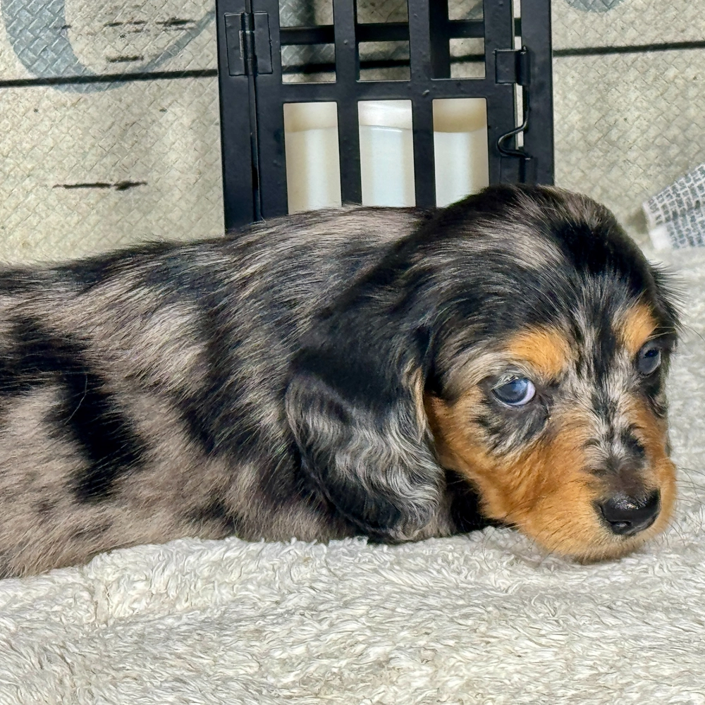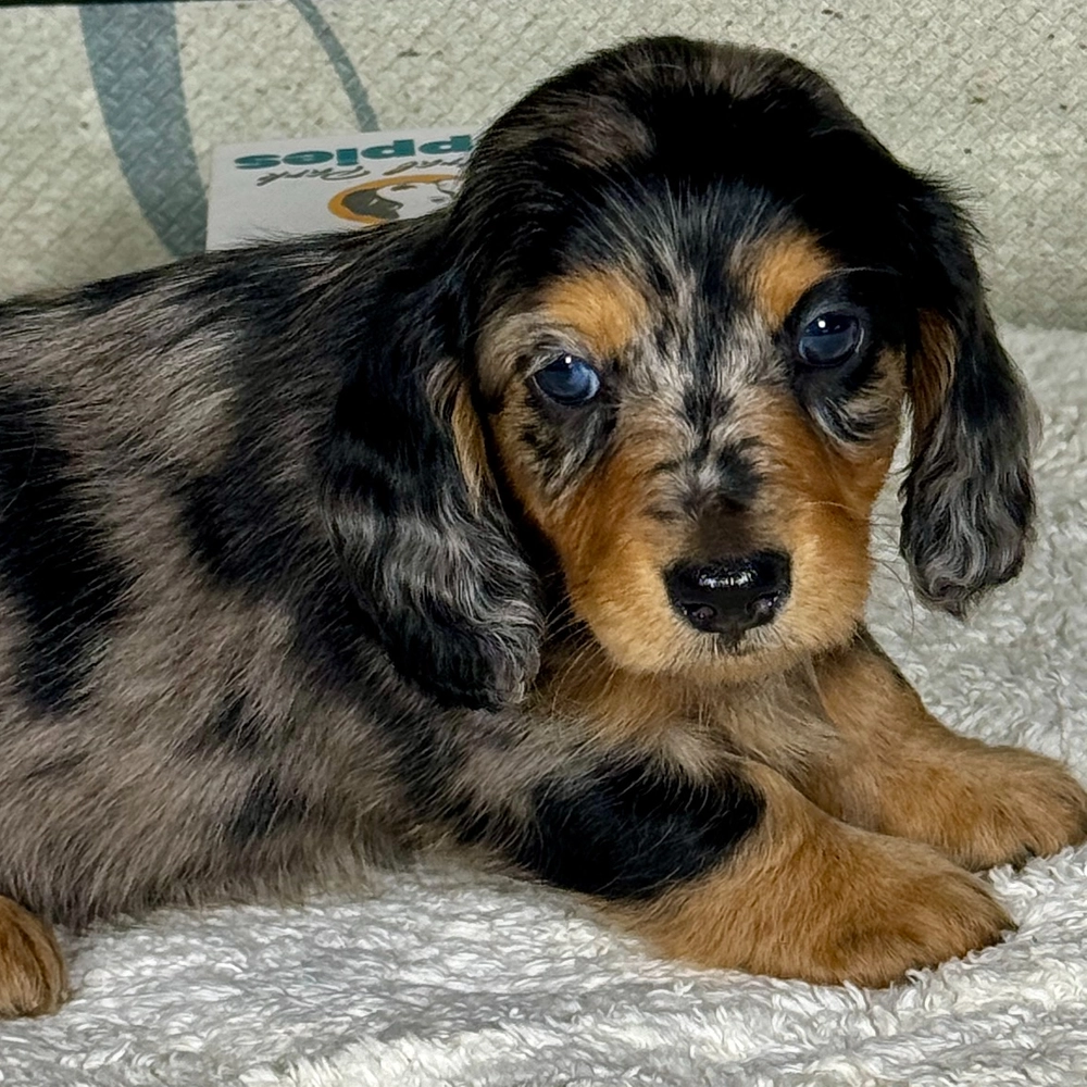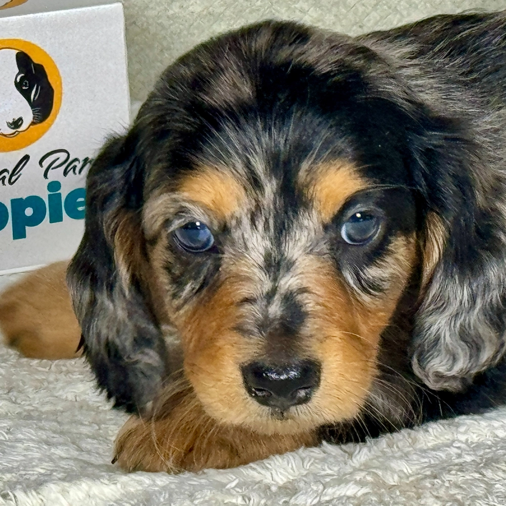 This adorable Mini Dachshund puppy is full of charm and sweetness. Snappy's joyful spirit and affectionate nature make her the perfect companion, always up for a game and a cuddle. Being a Pisces, Snappy is naturally affectionate and intuitive, bringing warmth to any home. Central Park Puppies will safely deliver the puppy directly to your home, anywhere in the US. Ready to bring Snappy into your loving home? She's waiting to start her new adventure with you.