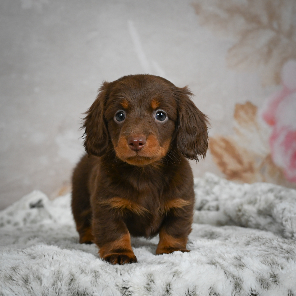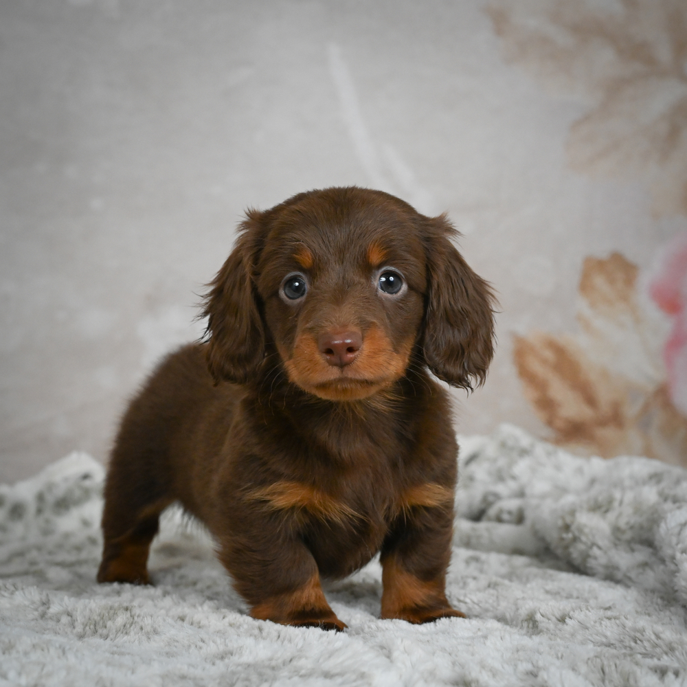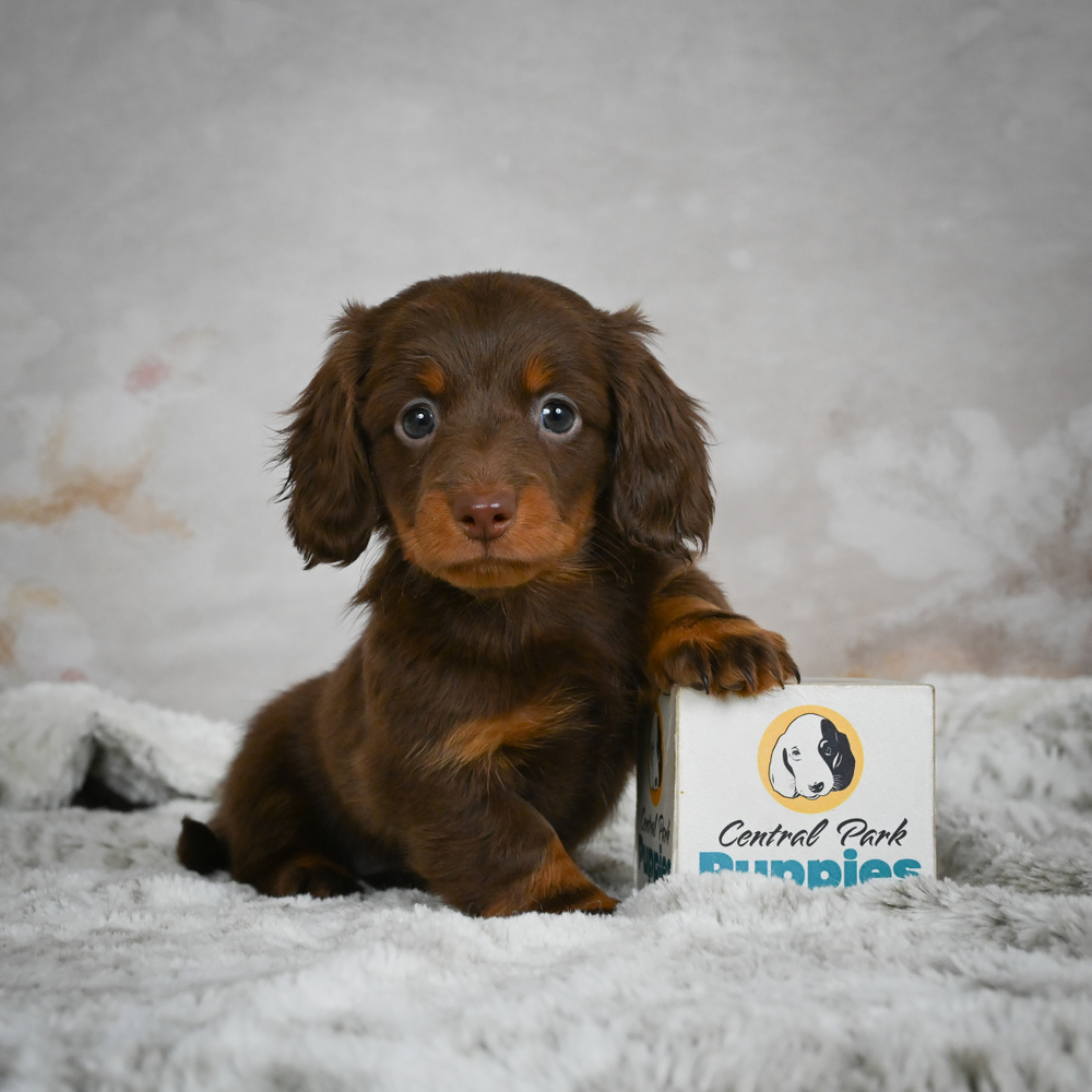 Discover the charm of a chocolate MINI DACHSHUND with lovely Butternut. This sweet pup, Butternut, will charm everyone with her lively antics and love for cuddles. Simply irresistible! Libras like Butternut are often known for their charming and balanced nature. Central Park Puppies will safely deliver the puppy directly to your home, anywhere in the US. Ready to welcome Butternut into your home? She's waiting to become your loving companion today.