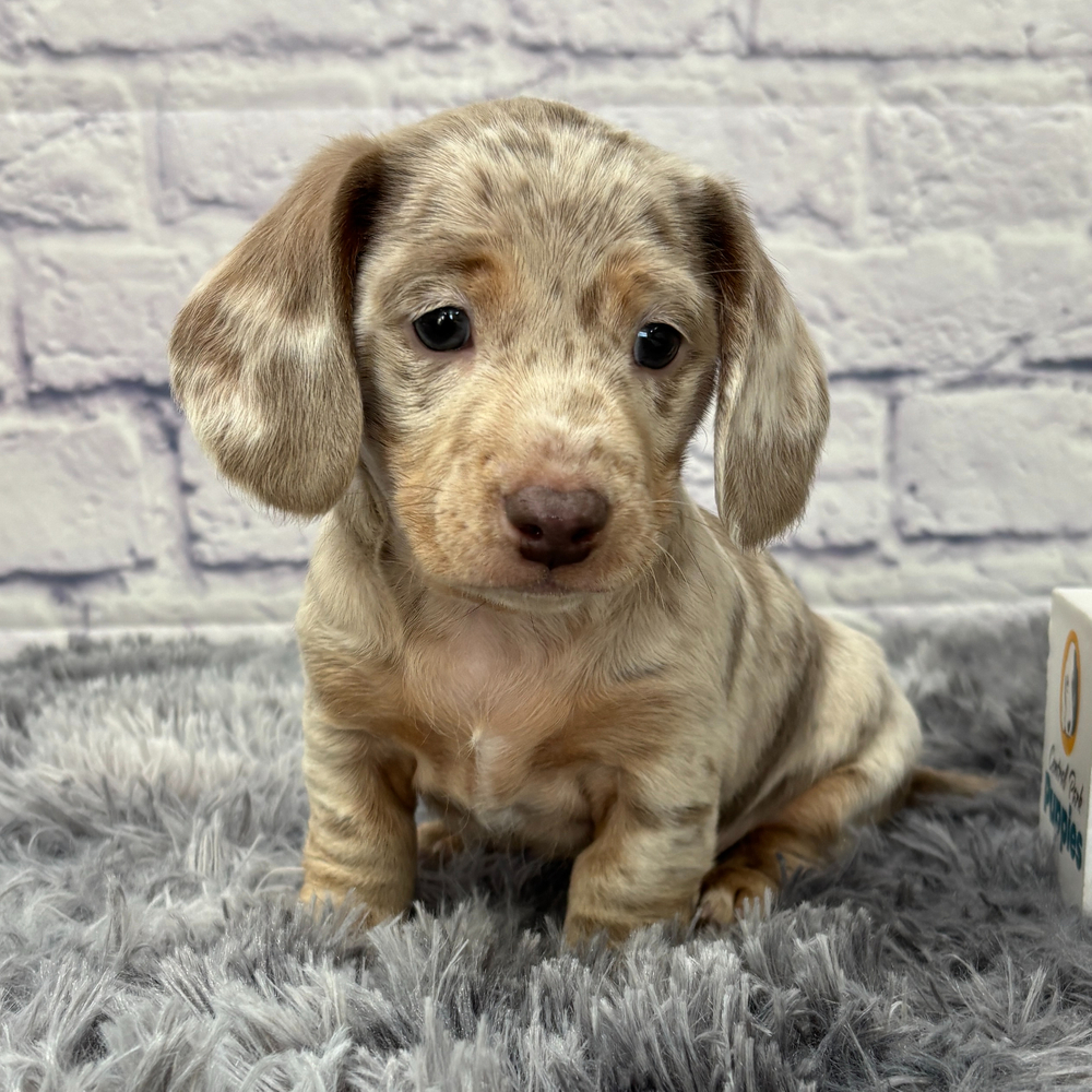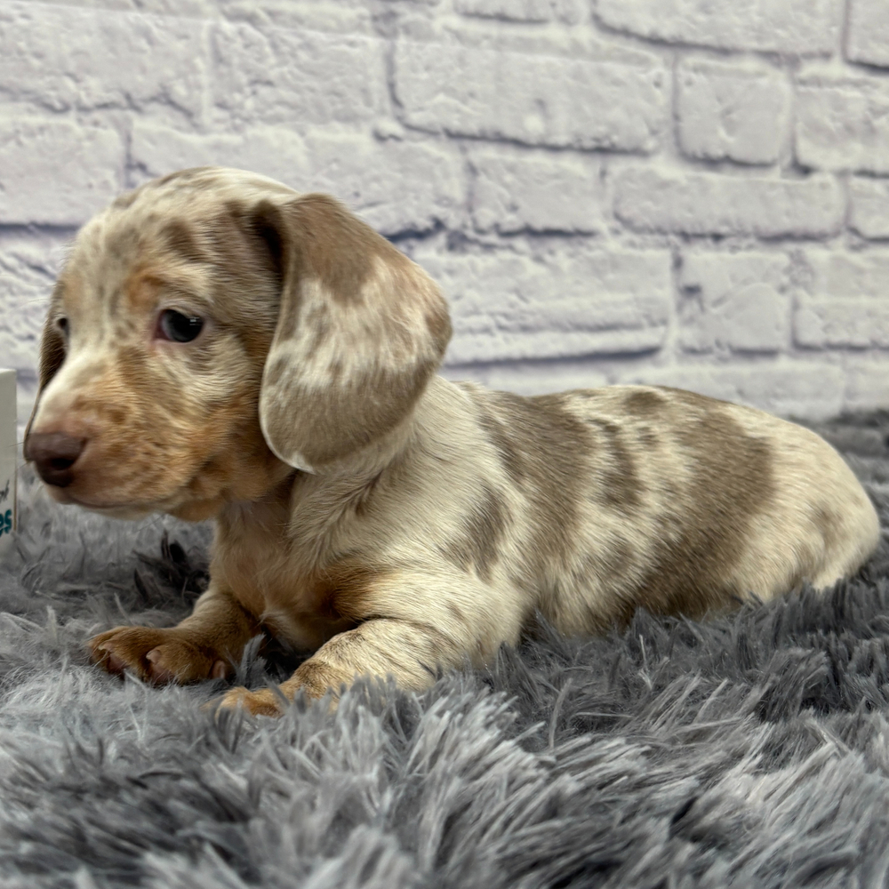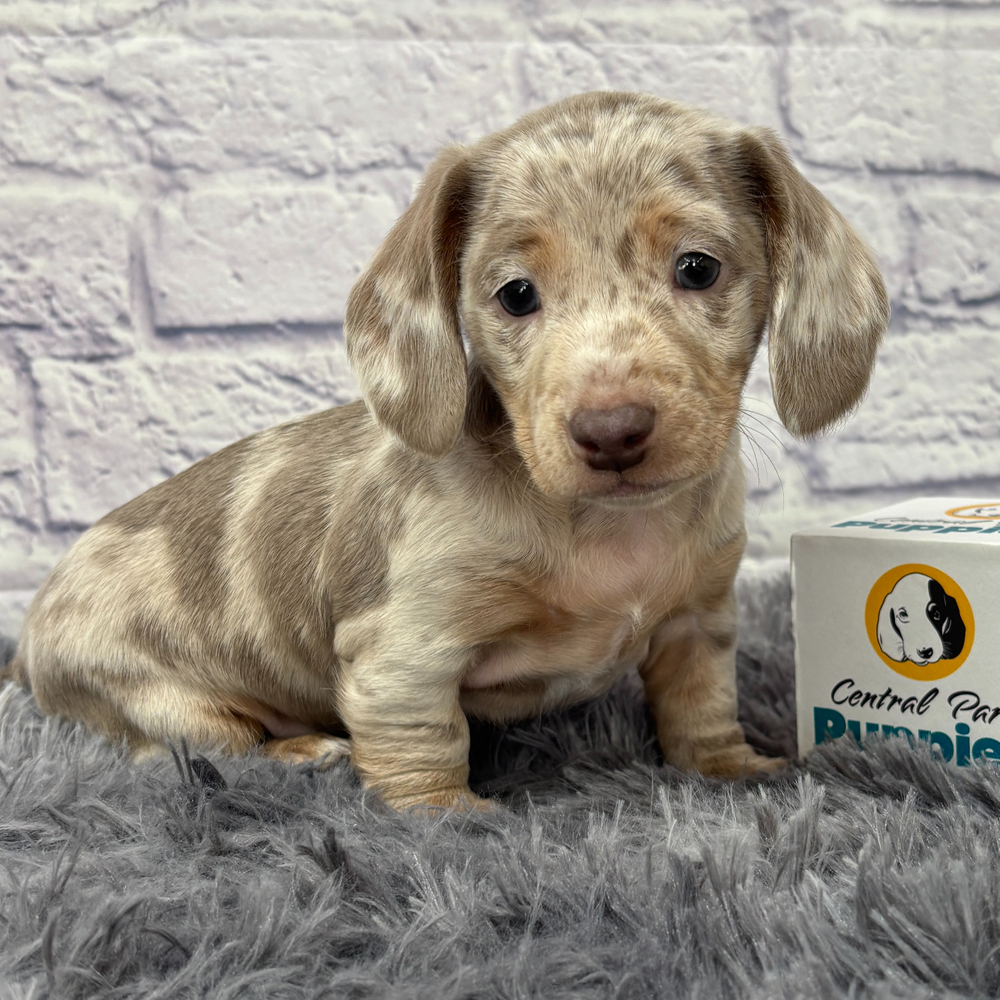 Charming Mini Dachshund, sure to bring joy. Brighten your days with Spot's playful nature and lovable cuddles. As a Sagittarius, Spot is spirited and adventurous, sure to uplift any home. Central Park Puppies will safely deliver the puppy directly to your home, anywhere in the US. Ready to bring Spot into your loving home? Make this joyful pup part of your life today.