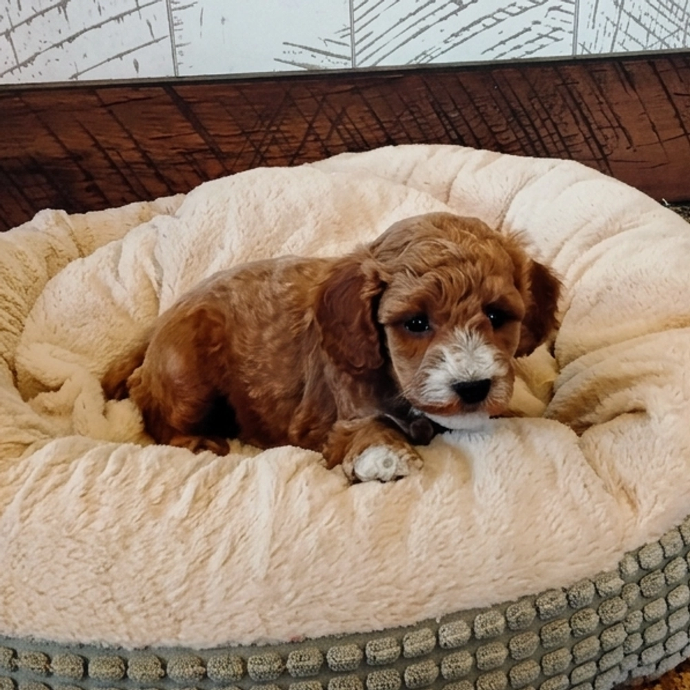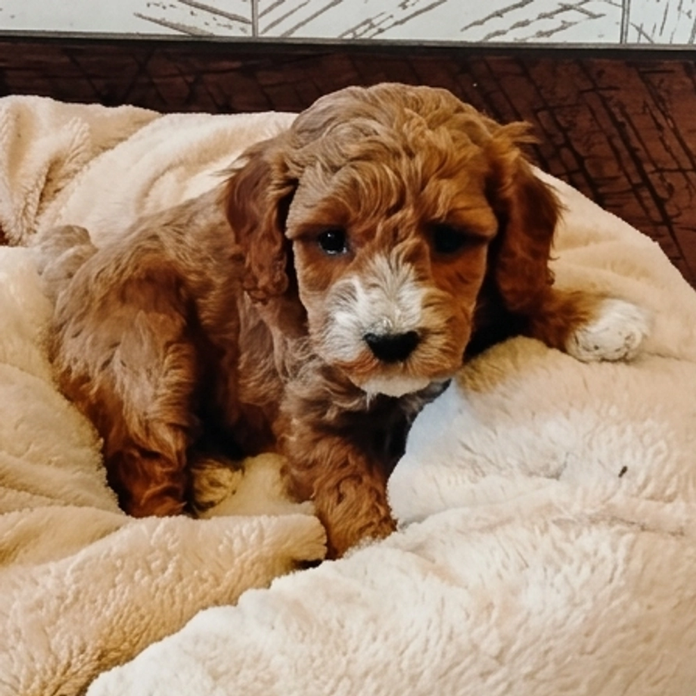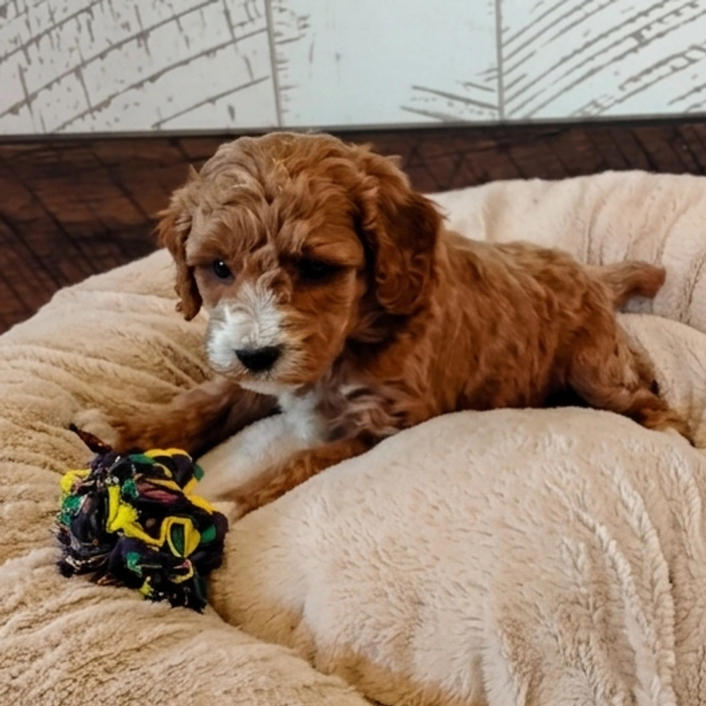 This delightful Miniature Poodle will charm with its playful attitude. Bax, with his lively demeanor and cuddly nature, is always happy to spread joy. His red and white coat adds to his irresistible appeal. As a Pisces, Bax will shower you with endless affection and a joyful spirit. Central Park Puppies will safely deliver the puppy directly to your home, anywhere in the US. Secure your future filled with sweet moments today. Ready to bring Bax into your loving home?