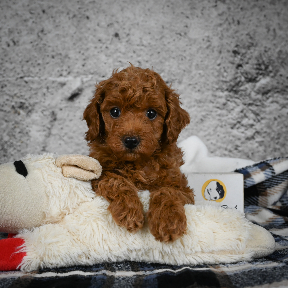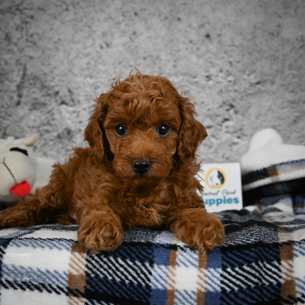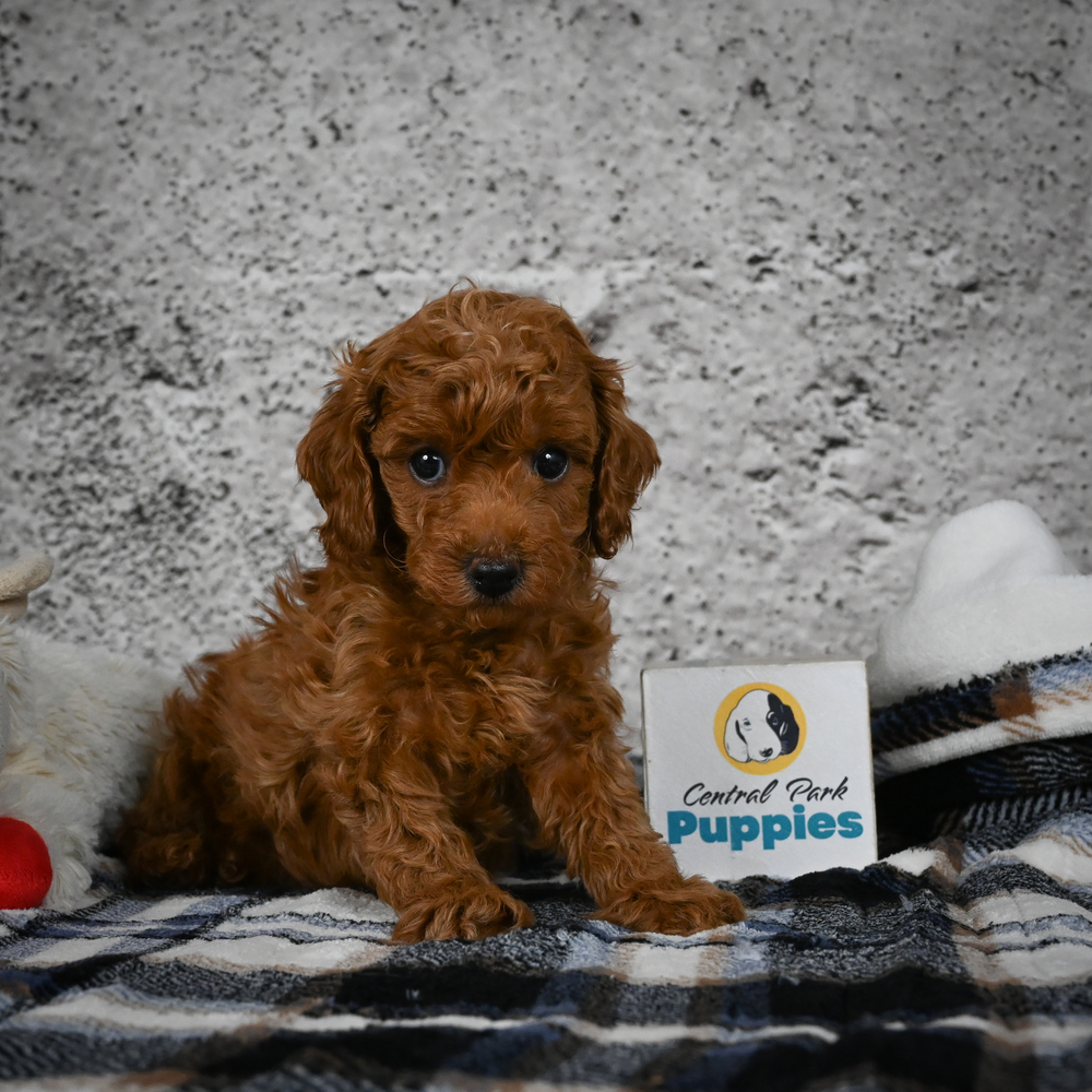 Red-colored Miniature Poodle, Sizzle oozes charm and playfulness, perfect for any loving home. With Sizzle, fun is guaranteed. His lively nature and loving presence promise to keep spirits high every day. Sagittarius puppies like Sizzle are naturally adventurous and bring joy to every moment. Central Park Puppies will safely deliver Sizzle directly to your home, anywhere in the US. Ready to bring Sizzle into your loving home? His playful nature is sure to steal your heart!