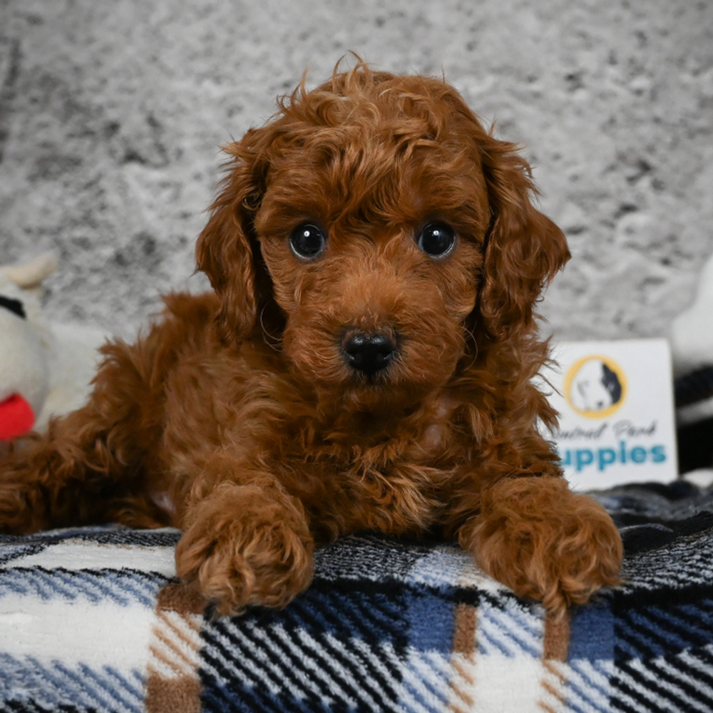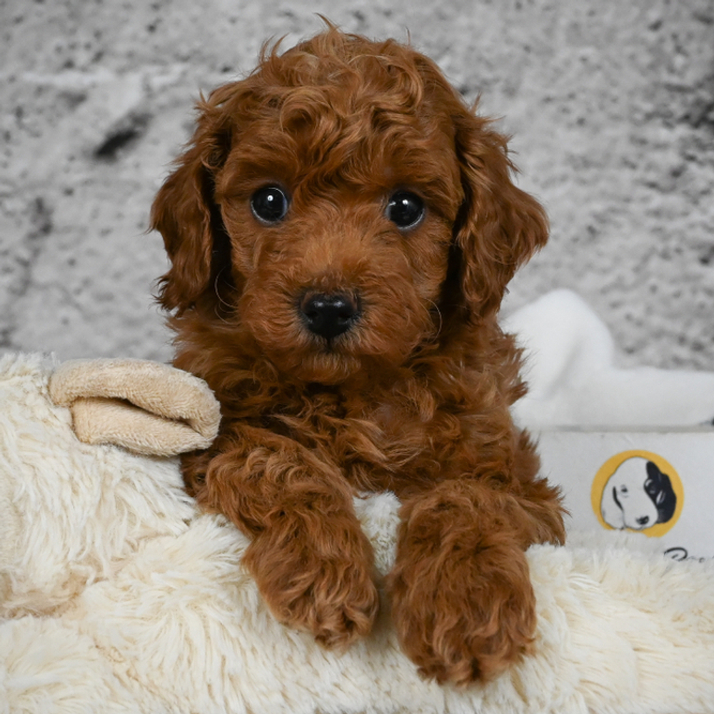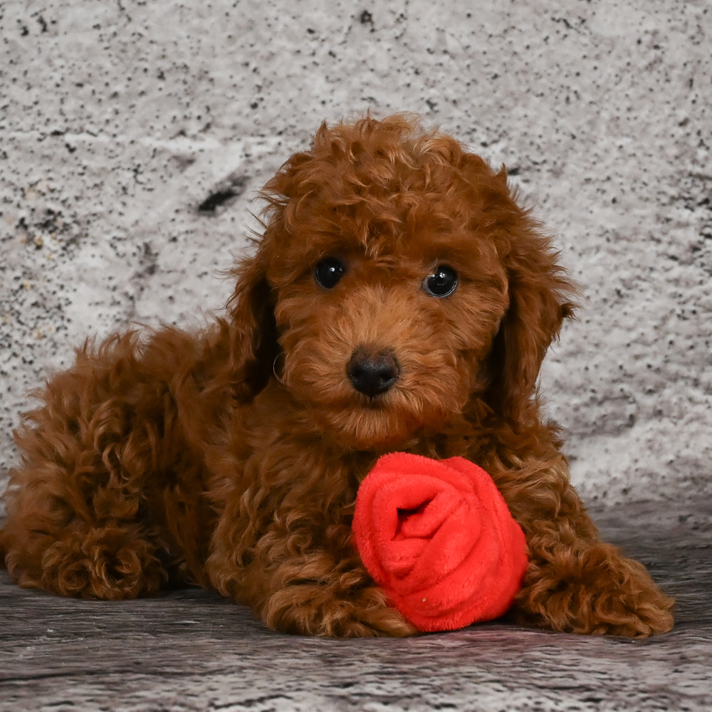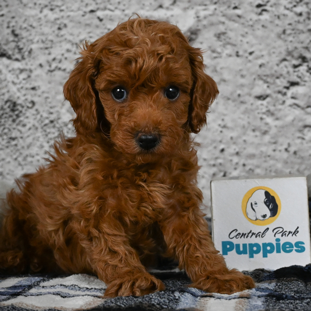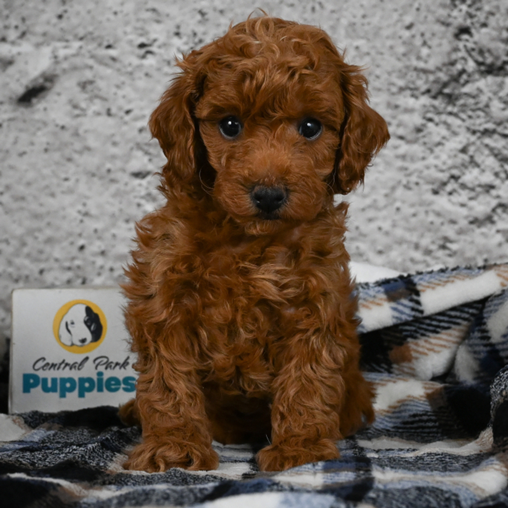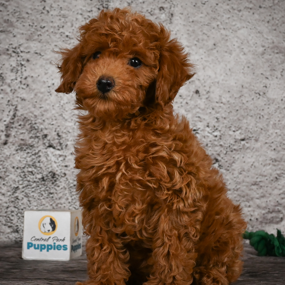Red-colored Miniature Poodle, Sizzle oozes charm and playfulness, perfect for any loving home. Sizzle is AKC registered with the American Kennel Club. With Sizzle, fun is guaranteed. His lively nature and loving presence promise to keep spirits high every day.Sagittarius puppies like Sizzle are naturally adventurous and bring joy to every moment. Central Park Puppies will safely deliver Sizzle directly to your home, anywhere in the US. Ready to bring Sizzle into your loving home? His playful nature is sure to steal your heart!