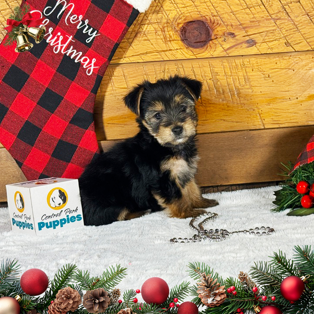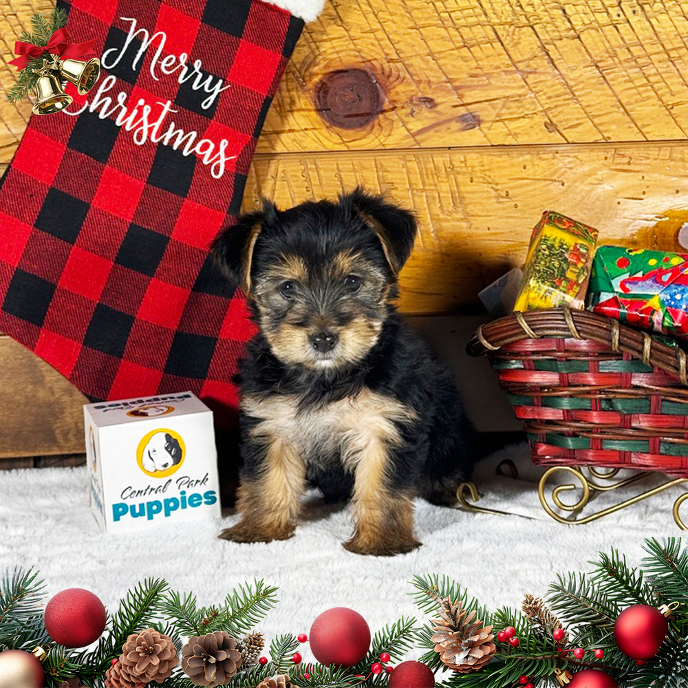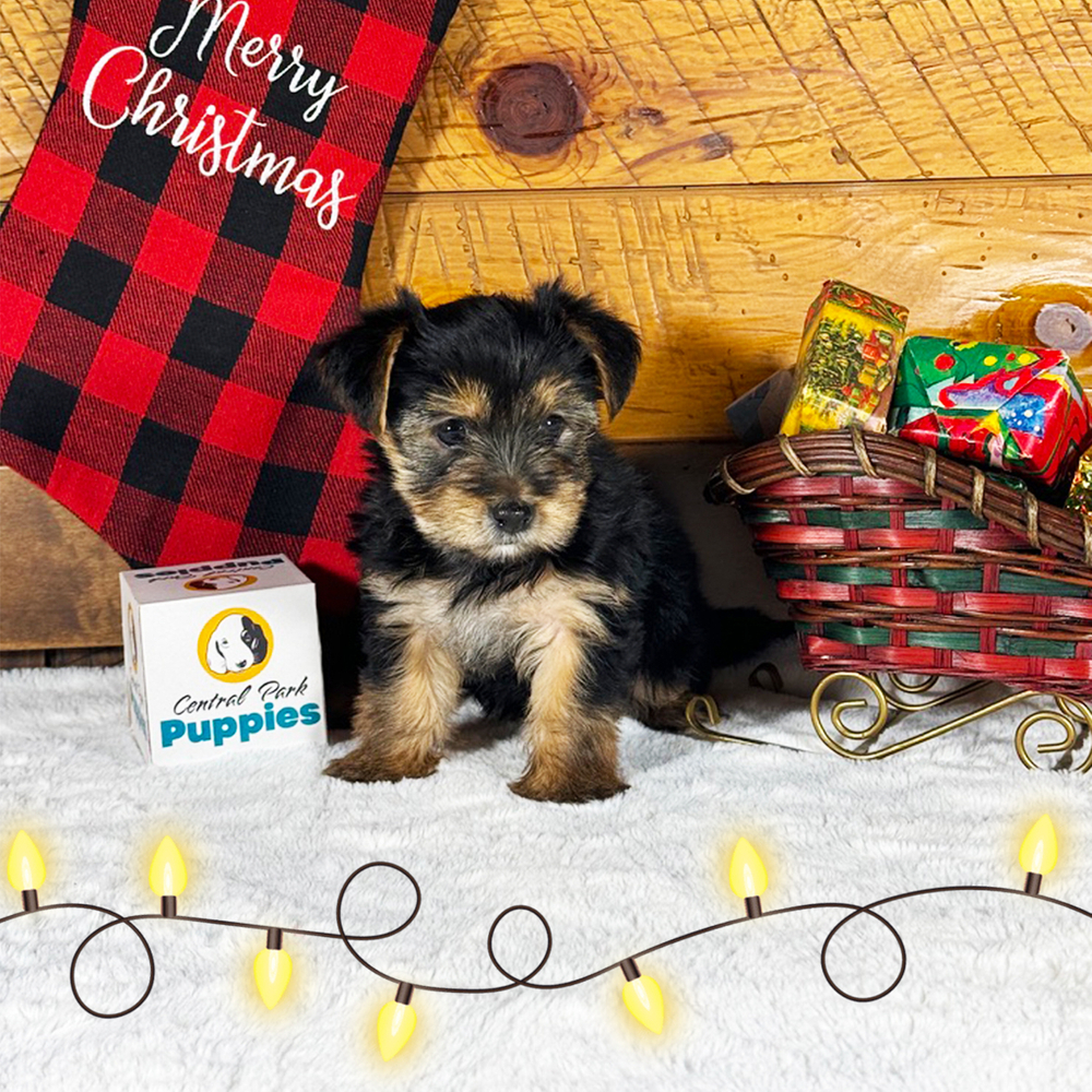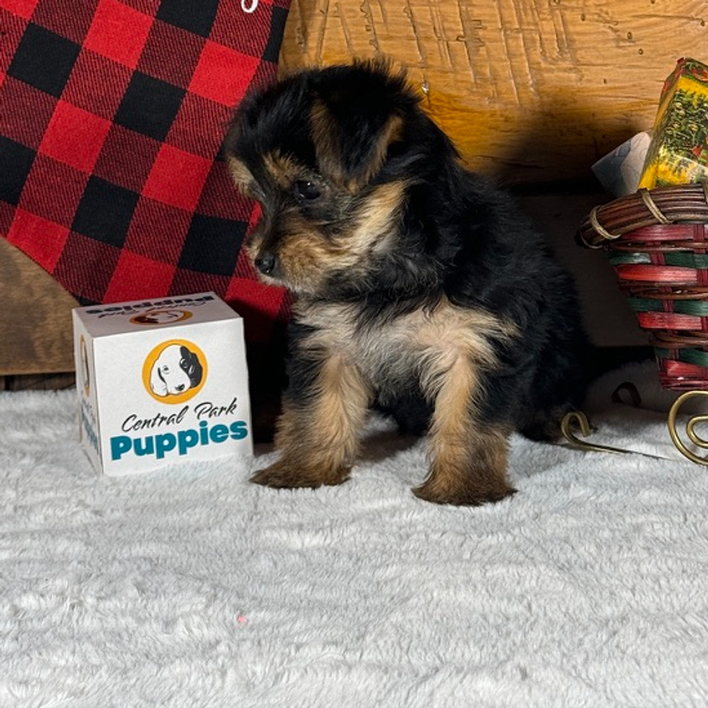 Peppy is a charming Yorkshire Terrier, bursting with playful energy and affectionate personality. Peppy enjoys cuddles and fun. With her striking black and tan fur, she's an eye-catching bundle of joy. As a Scorpio, Peppy has a vibrant personality and forms strong bonds. Central Park Puppies delivers Peppy safely to your doorstep anywhere in the US. Bring joy home with Peppy; she's all set to brighten your days with love and laughter.
