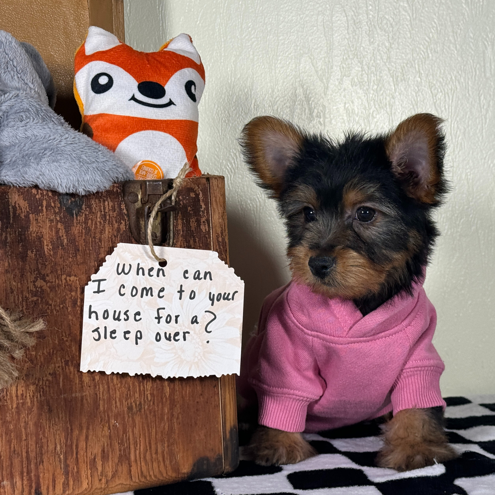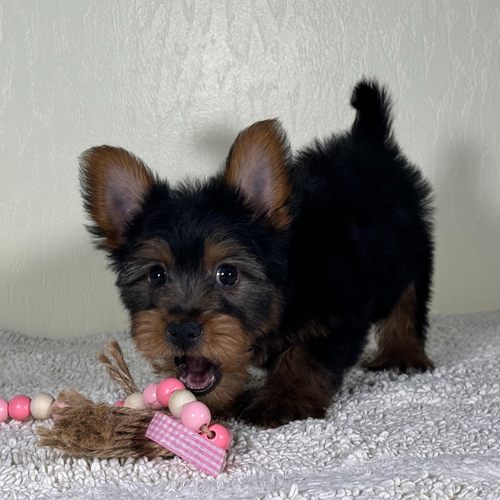 Charming Yorkshire Terrier Nibble. Nibble's friendly and lively personality makes her the perfect companion for playful adventures and snuggly evenings. As a Scorpio, Nibble is deeply affectionate and loyal. Central Park Puppies will safely deliver Nibble anywhere in the US. Nibble can't wait to snuggle up in her forever home with you. Ready to bring her home now?